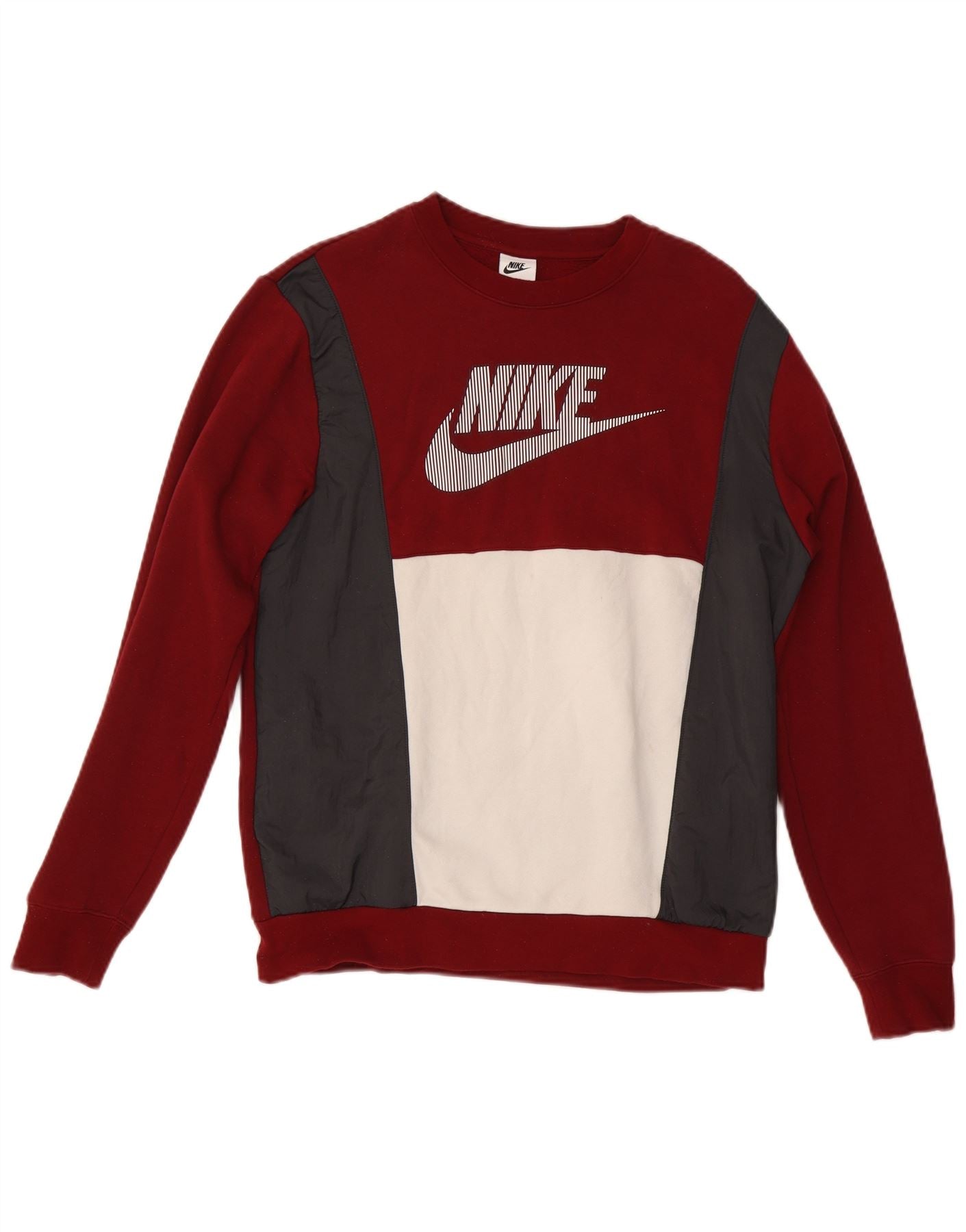 NIKE Mens Graphic Sweatshirt Jumper Medium Burgundy Colourblock Cotton