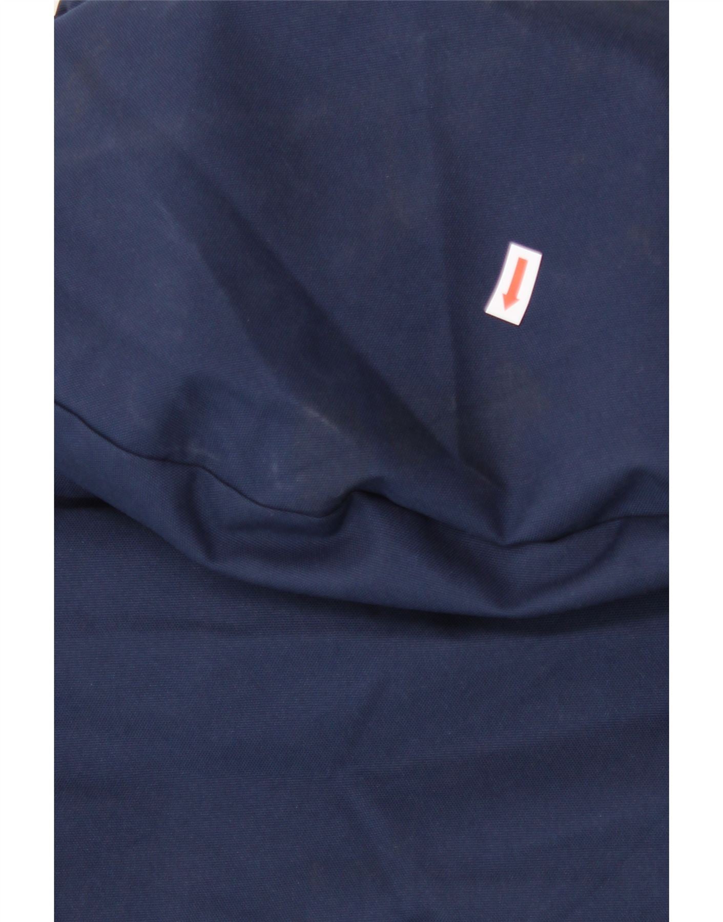 - AI Description: This pre-owned Nike sports jacket is perfect for active wear. Crafted from woven, water-resistant polyester, this navy blue jacket features a comfortable regular fit and a hooded neckline. It boasts a full zip closure, zipped pockets, and the iconic Nike logo. Size XL. Condition: Excellent, with minor discoloration on a small area on the front. Washing Instructions: See inner label. Made in China.