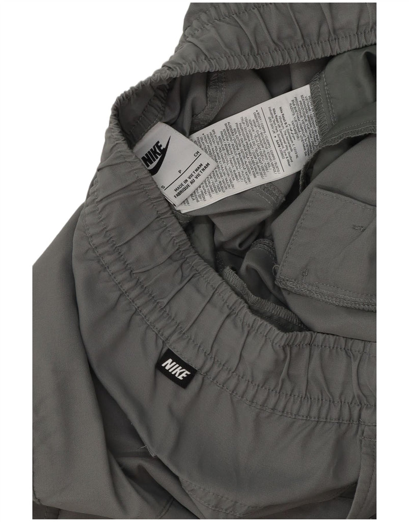 - AI Description: This Nike mens Cargo Trousers are crafted from durable grey polyester woven fabric. The pull on closure and elastic waist ensure a comfortable, adjustable fit. A regular fit with straight legs offers a classic silhouette. Multiple pockets provide practical storage, while a subtle logo accent adds signature branding. These trousers are ideal for sports or casual wear.
