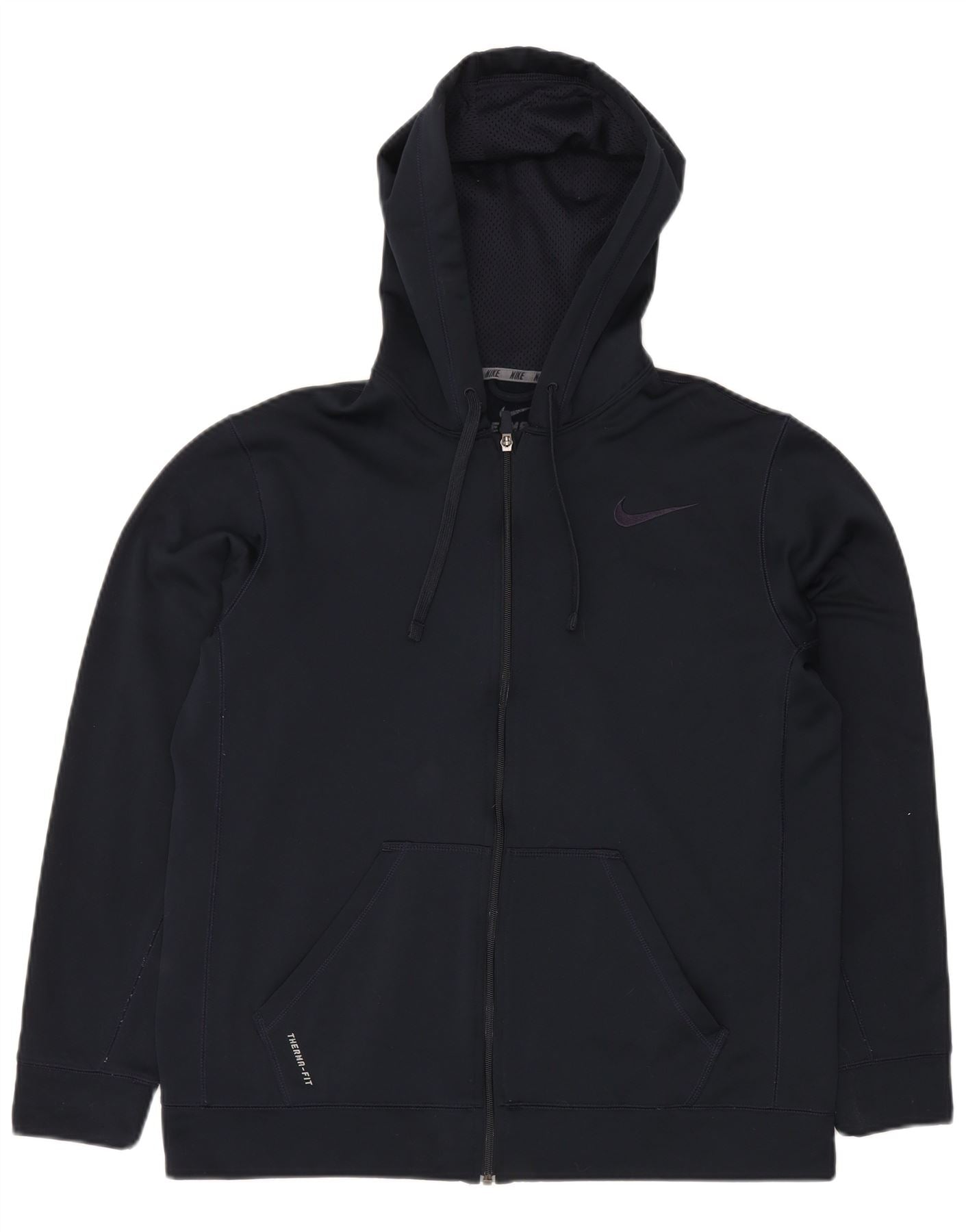 NIKE Sudadera con capucha Therma-Fit Zip para hombre, talla grande, poliéster azul marino