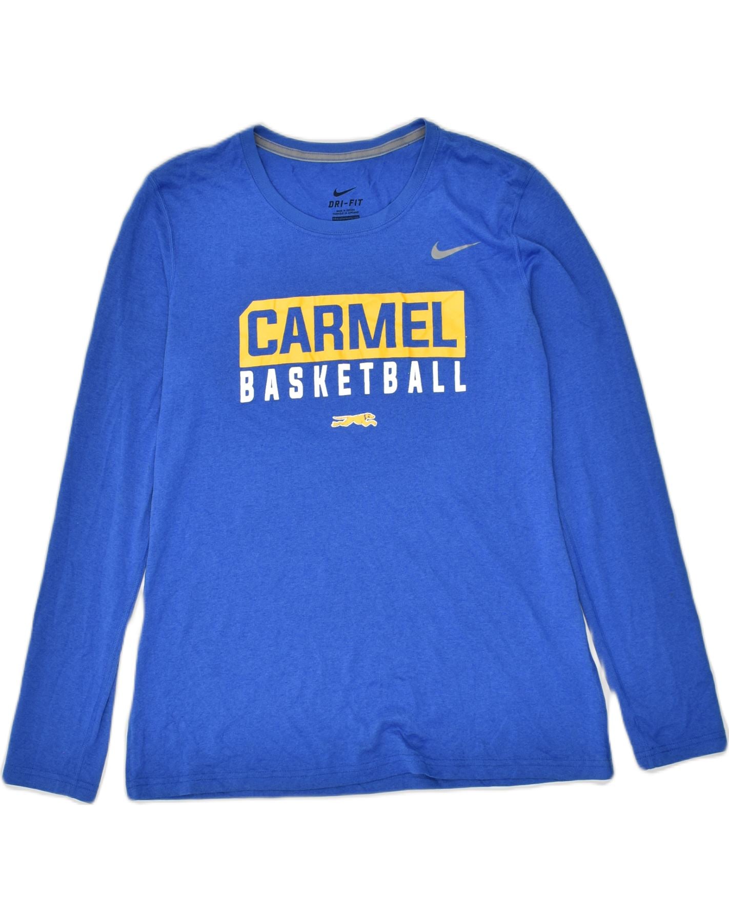 NIKE Mujer Dri Fit Graphic Top Manga Larga UK 40 Grande Poliéster Azul