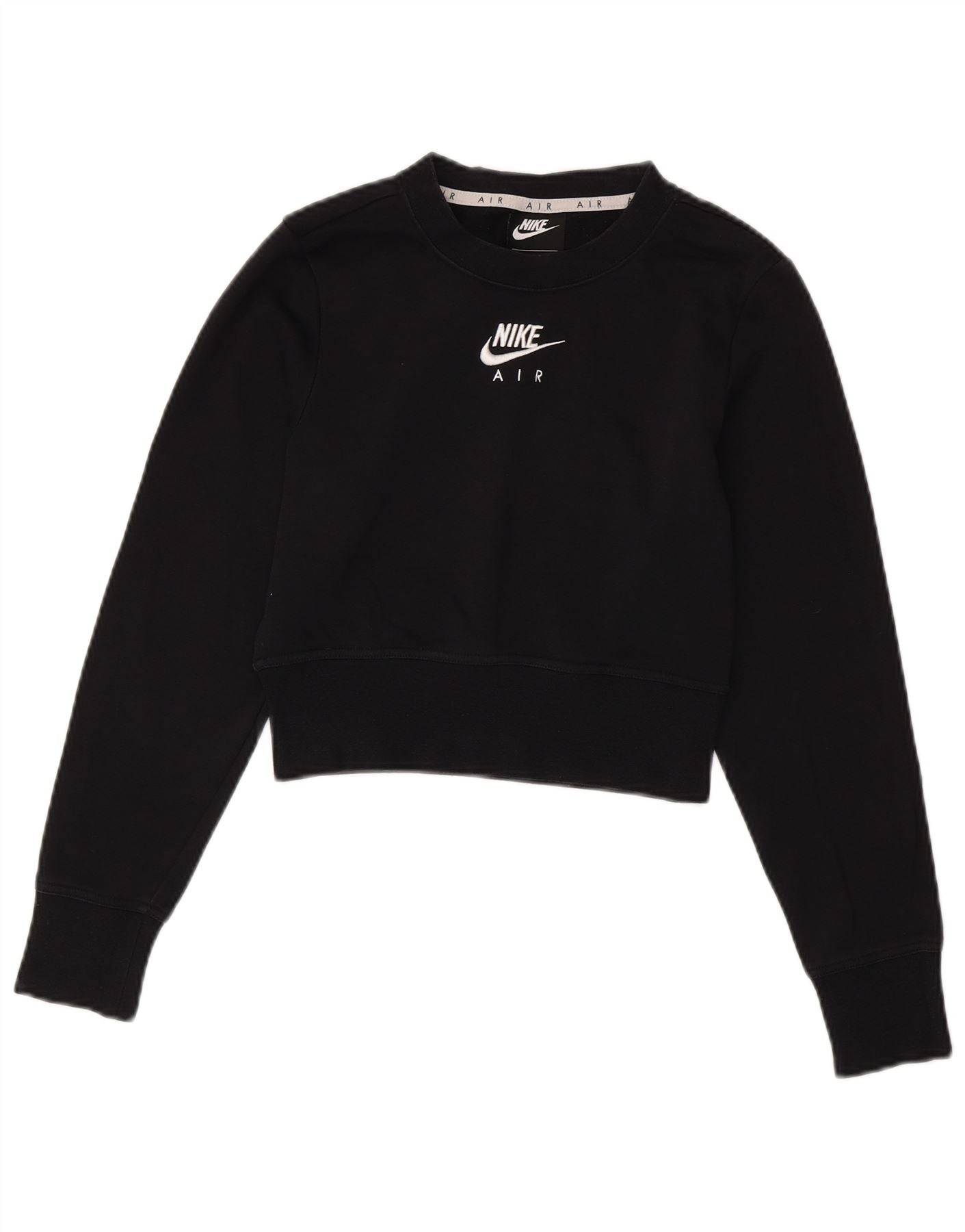 NIKE Mujer Crop Graphic Sudadera Jumper UK 6 XS Algodón Negro