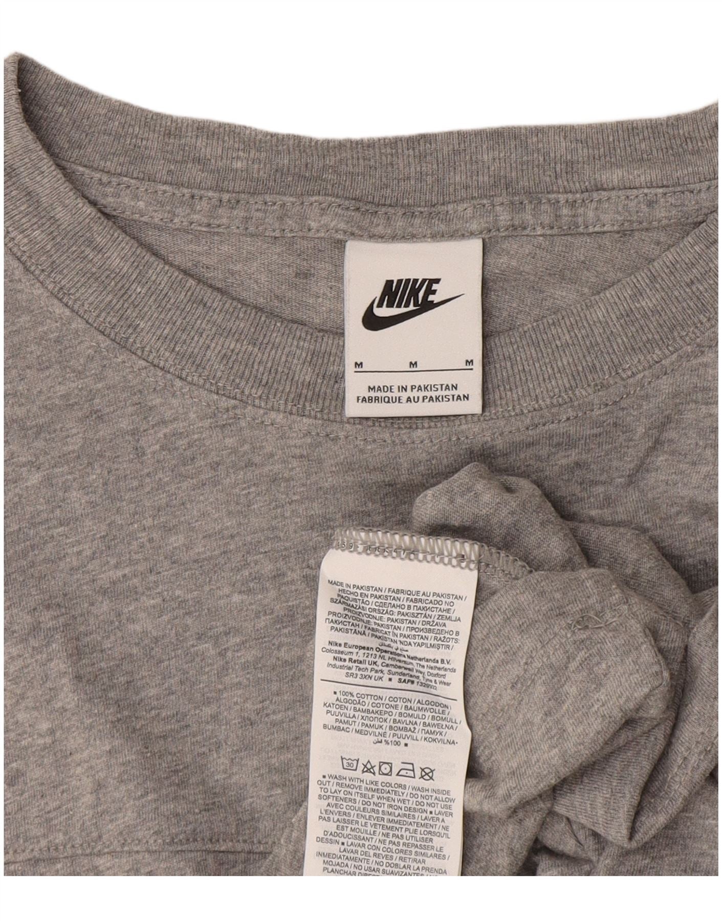 NIKE Camiseta corta con gráfico para mujer UK 40 Algodón con bloques de color gris medio