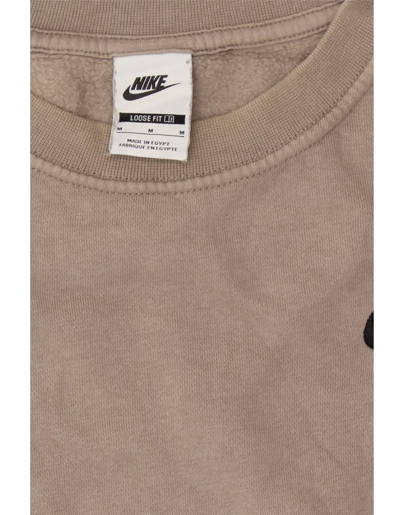 NIKE Womens Crop Loose Fit Sweatshirt Jumper UK 14 Medium Beige Cotton