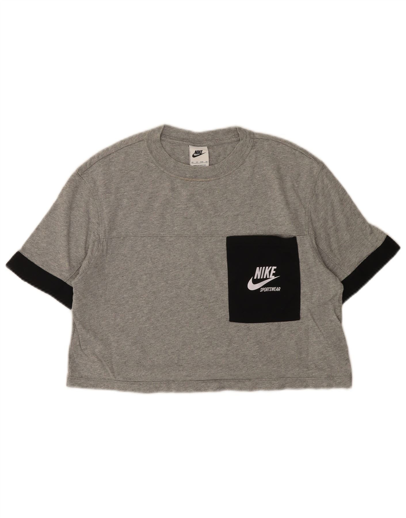 NIKE Womens Crop Oversized T-Shirt Top UK 6 XS Grey Colourblock Cotton