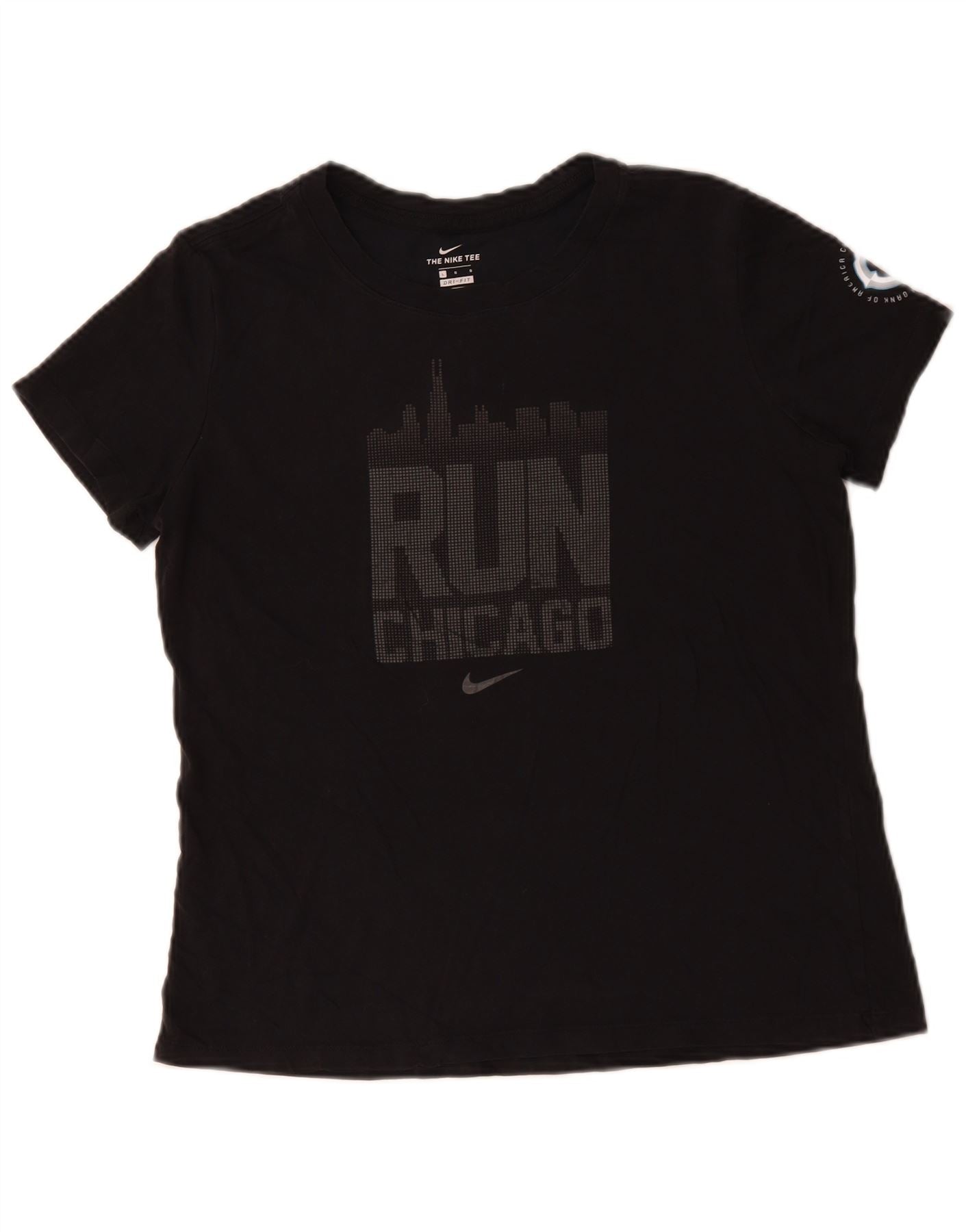 NIKE Mujer Dri Fit Graphic Camiseta Top UK 40 Grande Algodón Negro