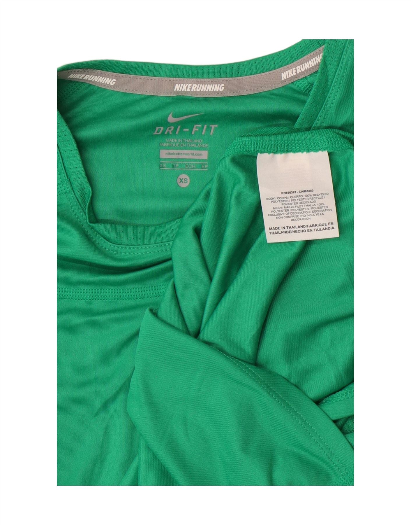 NIKE Womens Dri Fit Graphic T-Shirt Top UK 6 XS Green Polyester