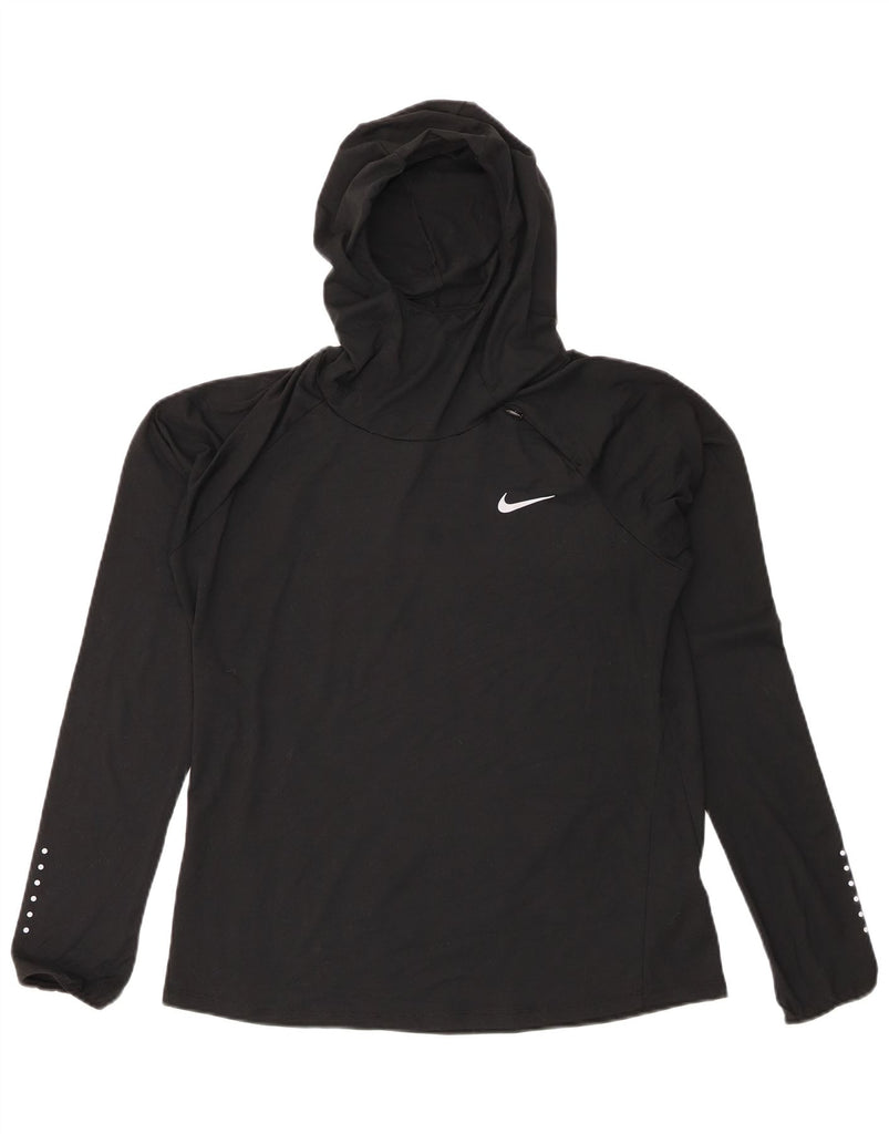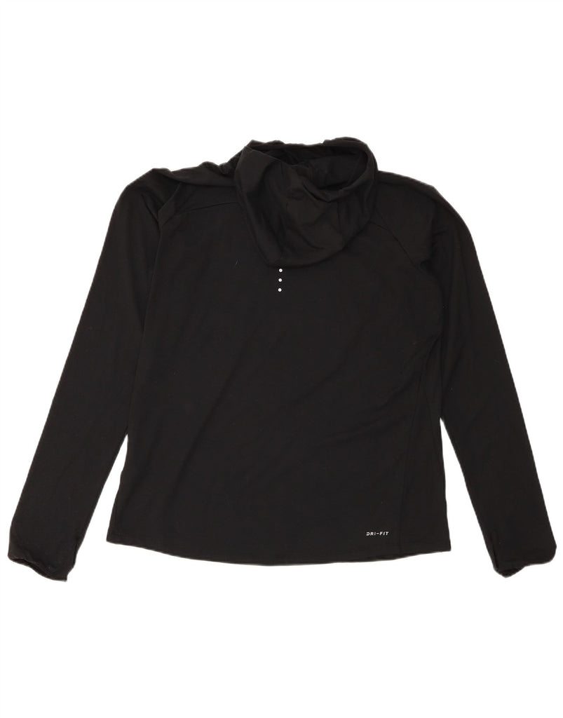 NIKE Womens Dri Fit Hooded Top Long Sleeve UK 16 Large Black Polyester
