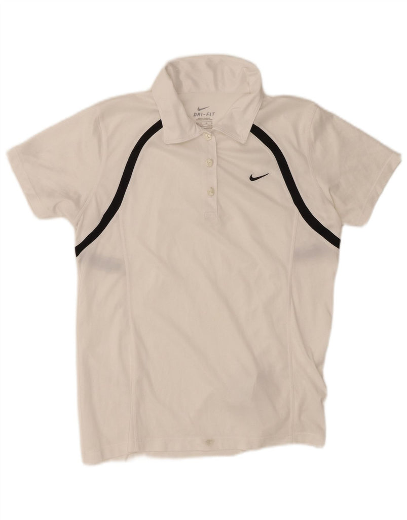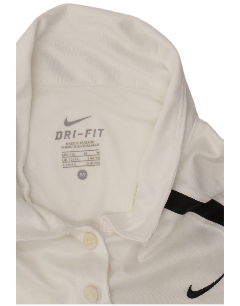 NIKE Womens Dri Fit Polo Shirt UK 12/14 Medium White Colourblock Polyester