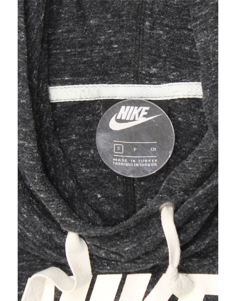NIKE Womens Graphic Hoodie Jumper UK 10 Small Navy Blue Flecked Cotton