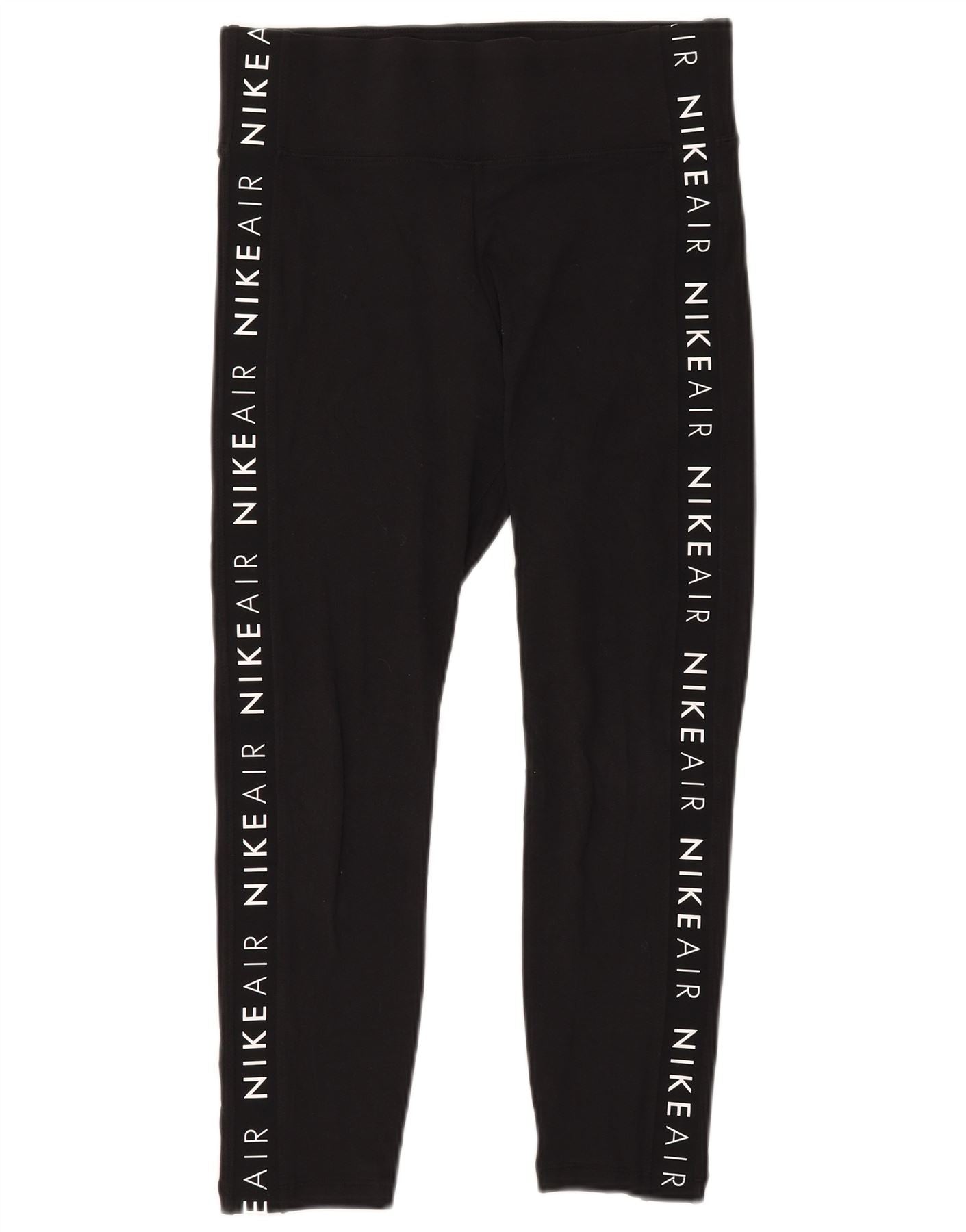 - Descripción de IA: Estos leggings cortos Nike para mujer están confeccionados con una suave mezcla de poliéster negro con mayor elasticidad. Cuentan con una cómoda cintura elástica y un corte entallado. El largo recortado es ideal para actividades físicas. La marca Nike Air blanca recorre cada costura lateral. Estos leggings ofrecen comodidad y estilo para uso activo.
