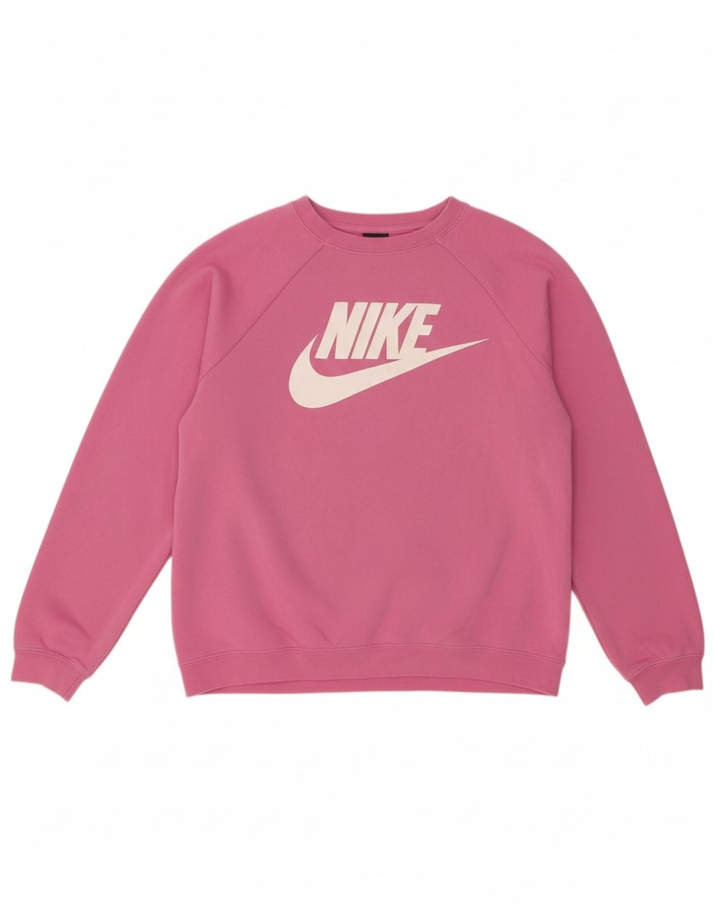 - AI Description: This Nike womens sweatshirt jumper is crafted from a soft pink blended fabric, featuring a comfortable jersey texture. The body combines 80 percent cotton with 20 percent polyester for a gentle feel. It features a classic round neck and long sleeves. The regular fit offers a comfortable yet flattering silhouette. A distinctive graphic logo provides a stylish accent. Its pullover design ensures ease of wear. This breathable garment also offers comfort and stretch for everyday activity.