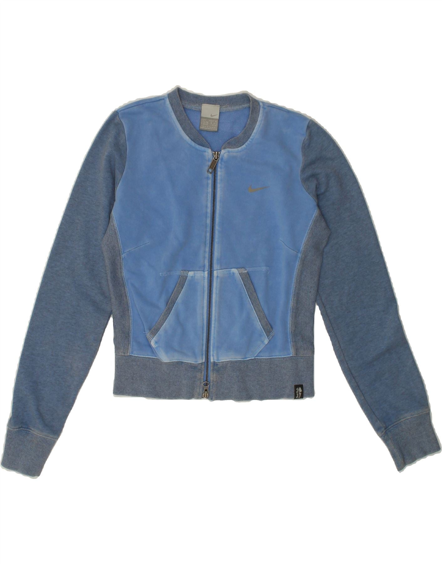 NIKE Womens Graphic Tracksuit Top Jacket UK 8/10 Small Blue Colourblock