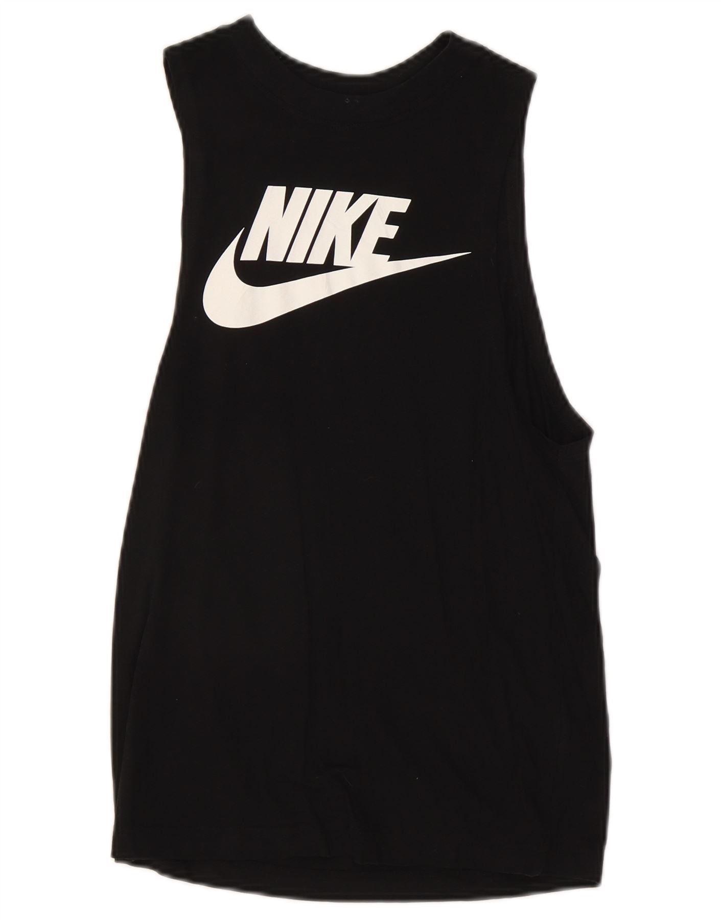 - Descripción de IA: Esta camiseta con gráfico Nike para mujer está confeccionada con un suave tejido de punto negro 100 % algodón. Presenta un cuello redondo clásico y un cómodo corte sin mangas. El corte regular garantiza facilidad de movimiento y una silueta relajada. Un prominente logotipo blanco de Nike adorna el frente, agregando un toque atlético característico. Este top liviano ofrece estilo y comodidad.