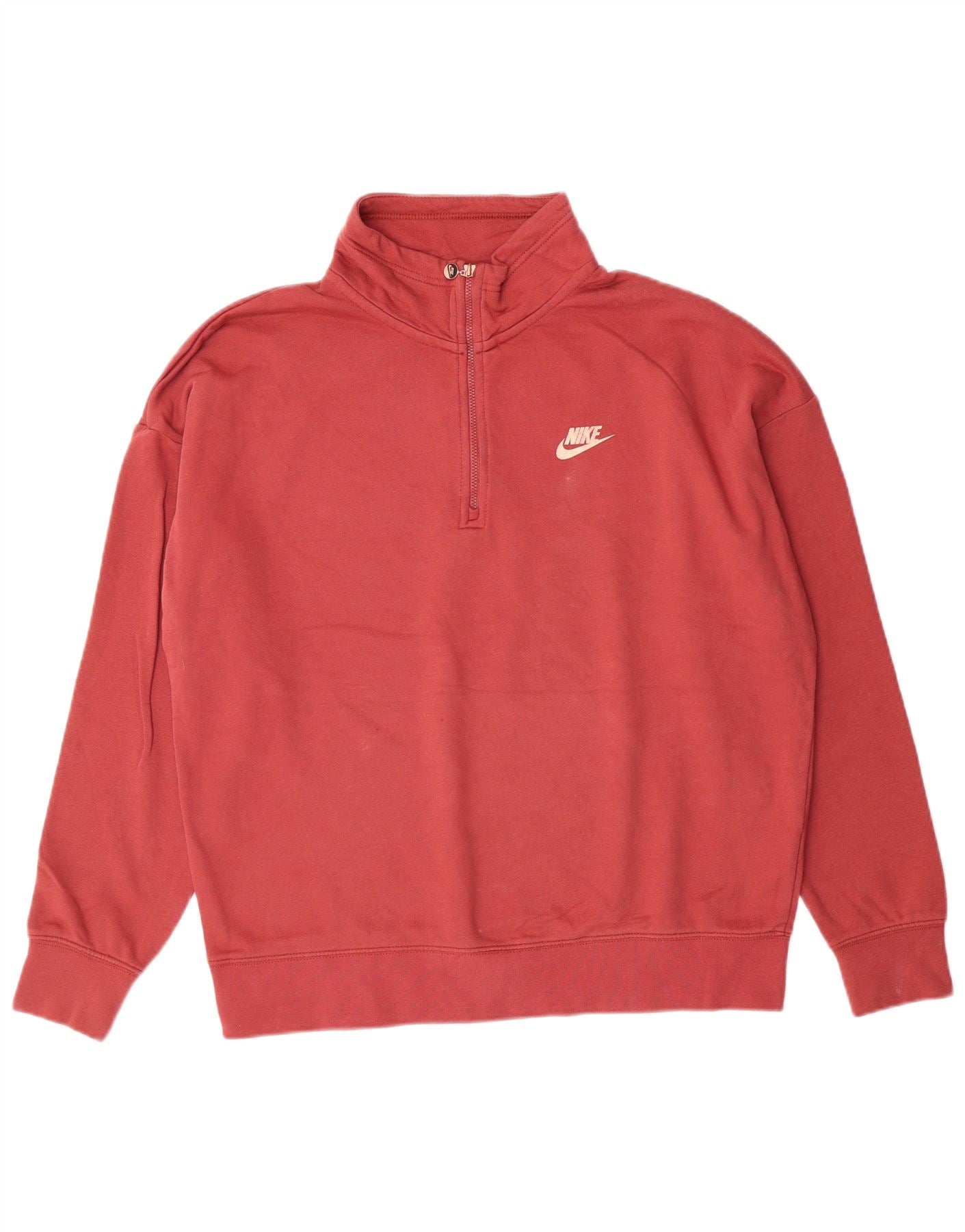 NIKE Sudadera extragrande con estampado gráfico y cuello con cremallera para mujer, talla 10, color rosa