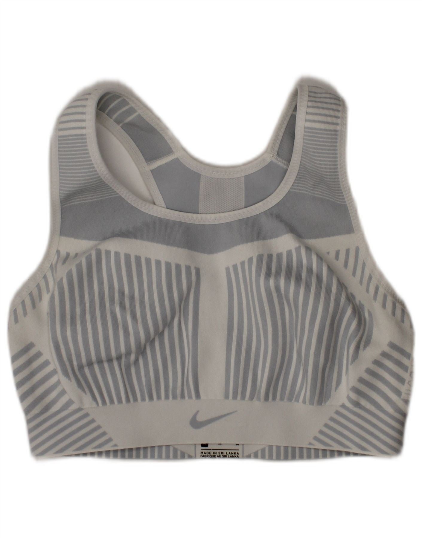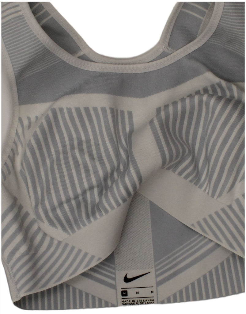 NIKE Womens Running Sport Bra Vest Top UK 12 Medium Grey Striped Sports