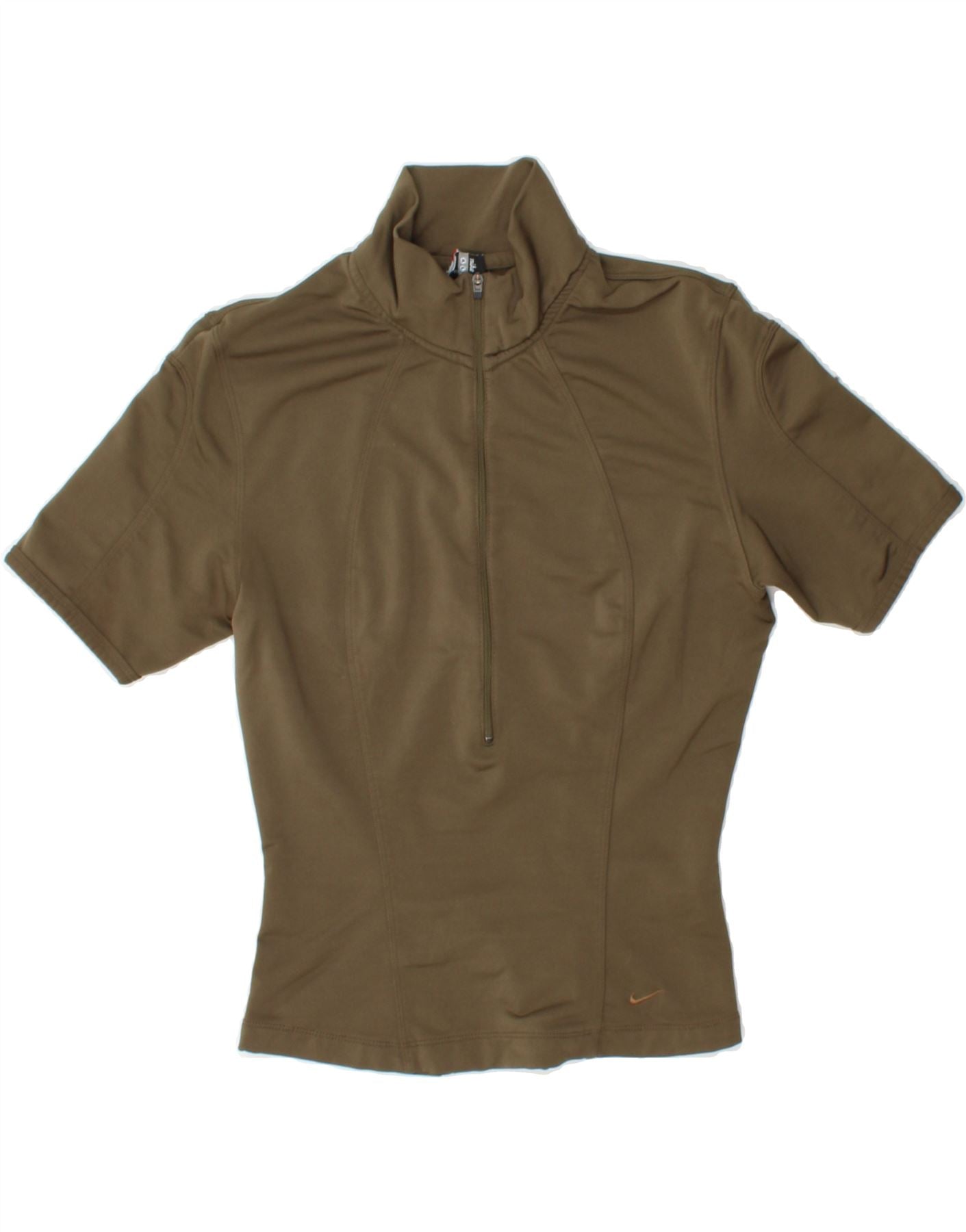 NIKE Womens Short Sleeve Pullover Tracksuit Top US 8/10 Medium Khaki