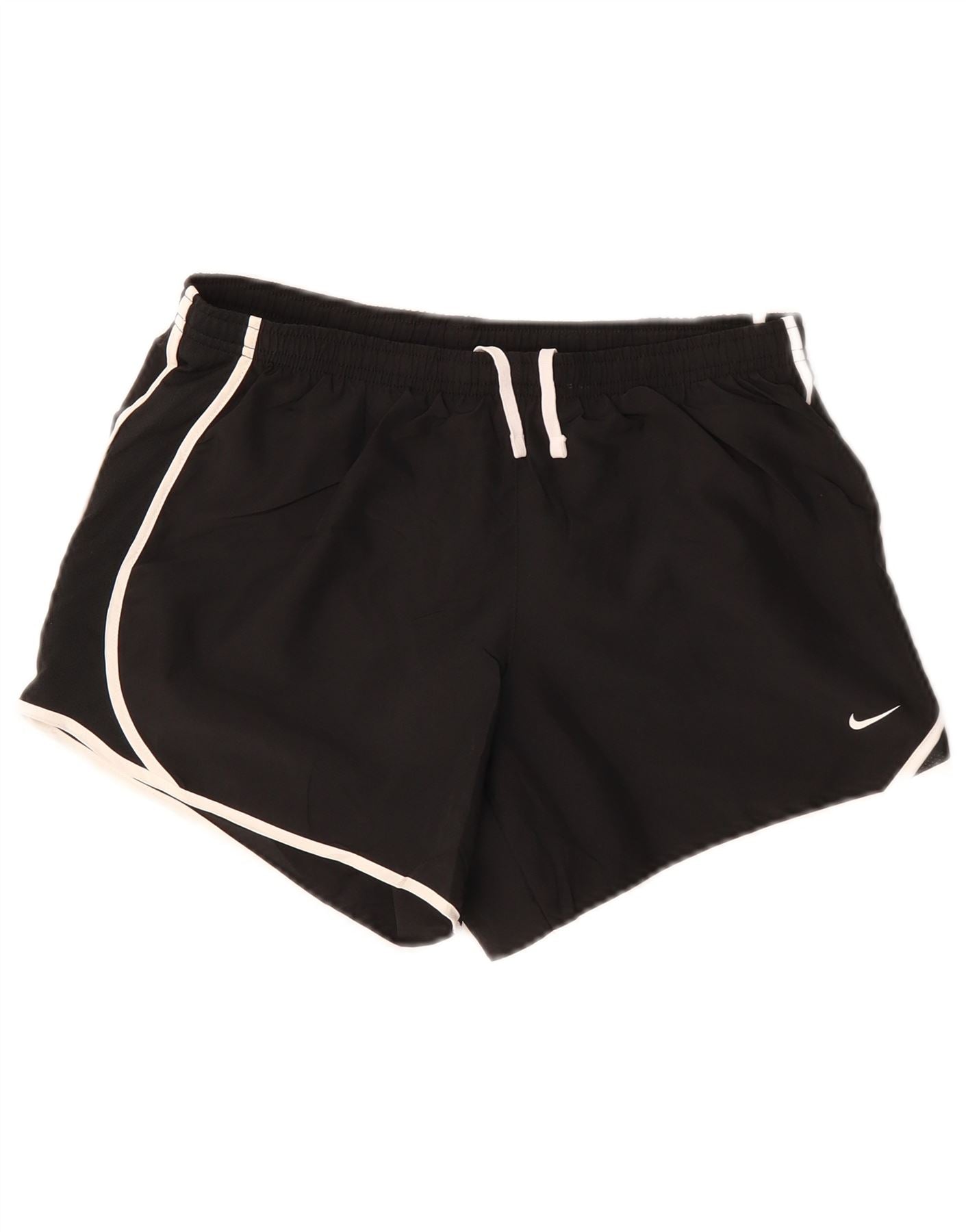 - Descripción de IA: Estos pantalones cortos Nike para mujer están confeccionados con poliéster negro ligero, ideal para correr. El estilo sin cordones presenta una cintura elástica para un ajuste seguro y cómodo. Los ribetes blancos detallan el dobladillo curvado y añaden un toque atlético clásico. Un sutil logotipo de Nike se coloca en la pierna. El corte regular y el tejido transpirable garantizan comodidad durante la práctica deportiva.