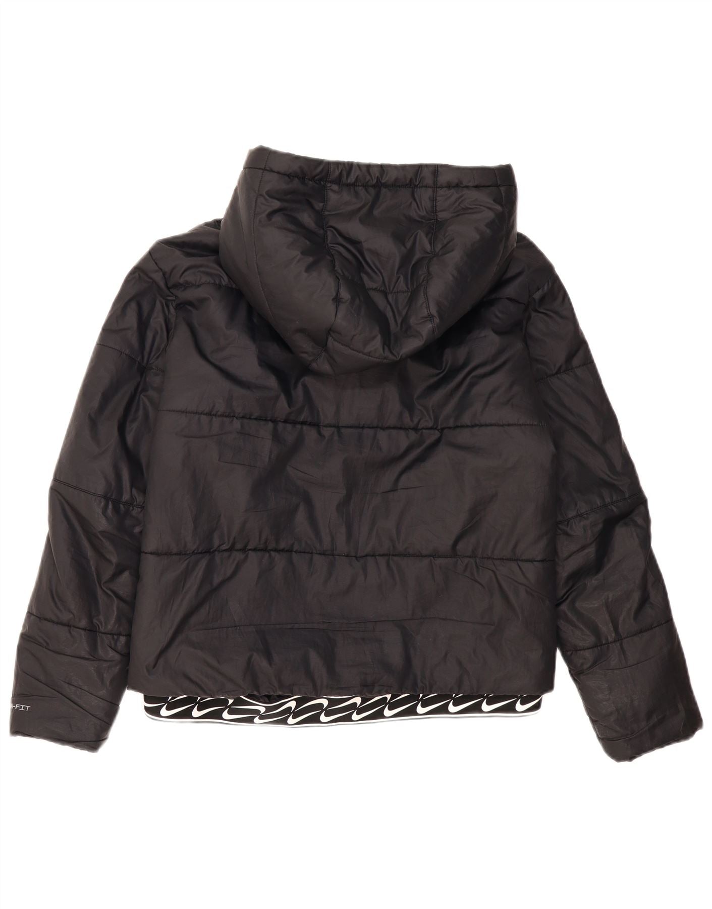 NIKE Chaqueta acolchada con capucha Therma-Fit para mujer UK 40 Mediana Poliéster negro