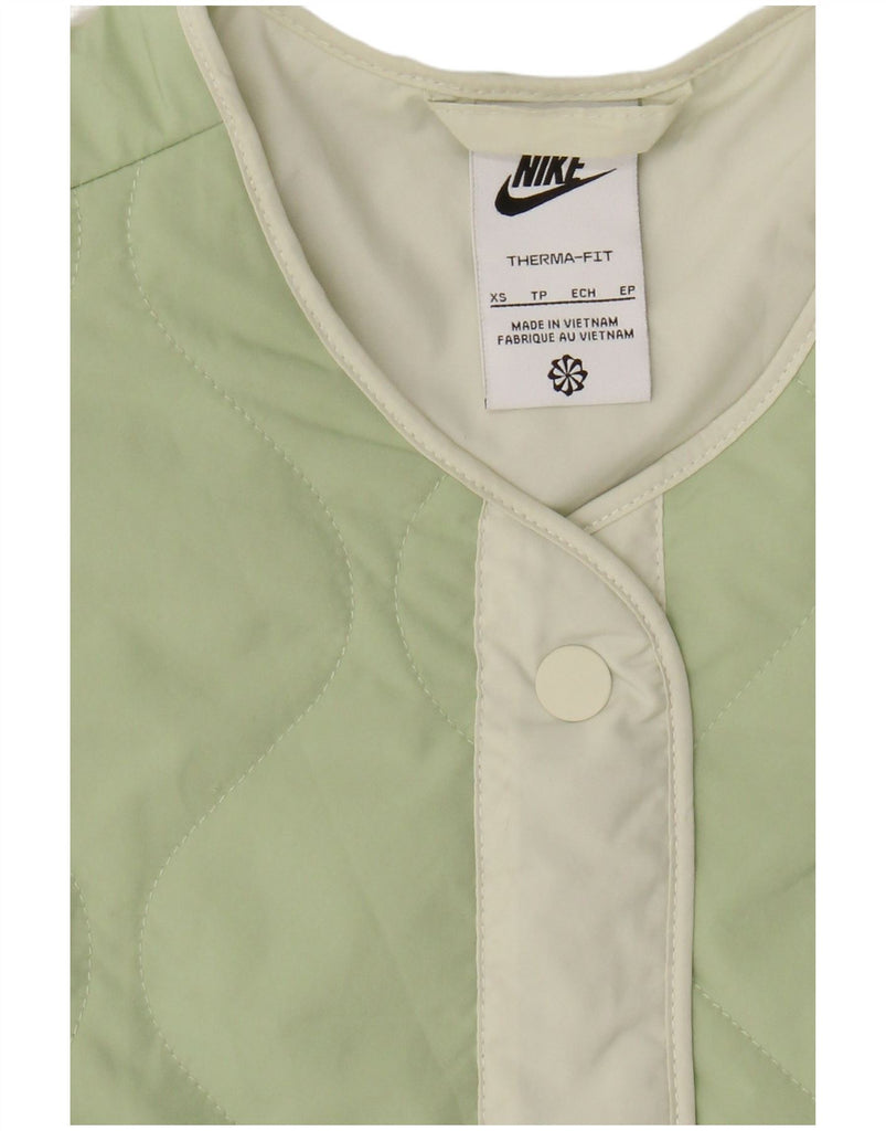 NIKE Womens Therma-Fit Oversized Quilted Jacket UK 6 XS Green Colourblock