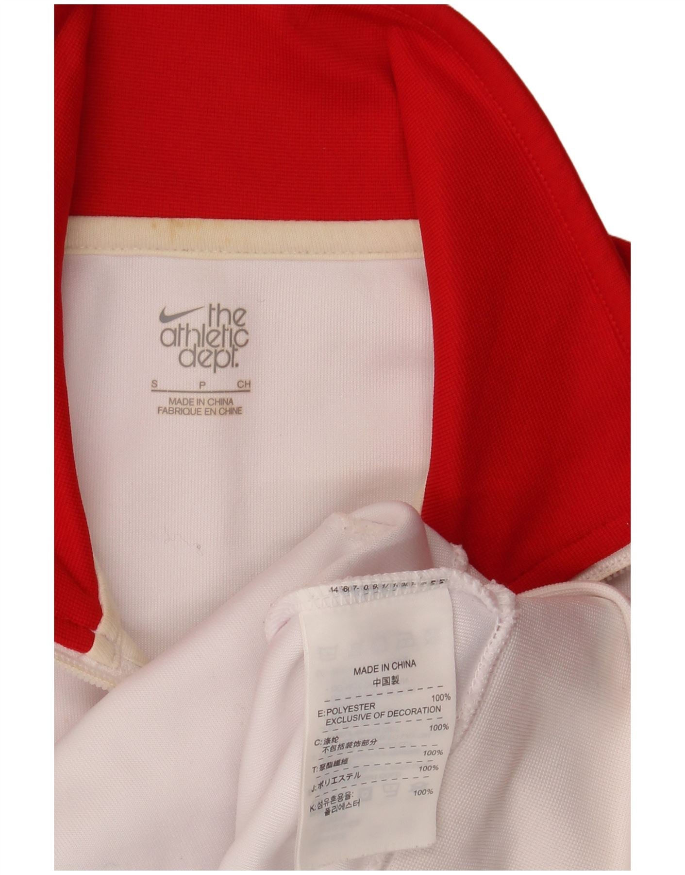 - AI Description: This Nike mens tracksuit top jacket is crafted from 100 percent polyester jersey for comfort. It features a striking colourblock pattern in multicoloured tones, including red, white, and black. The collared neckline and full zip closure offer versatile styling. Long sleeves and a regular fit ensure ease of movement. Practical pockets add functionality. A prominent logo provides a retro sports accent.