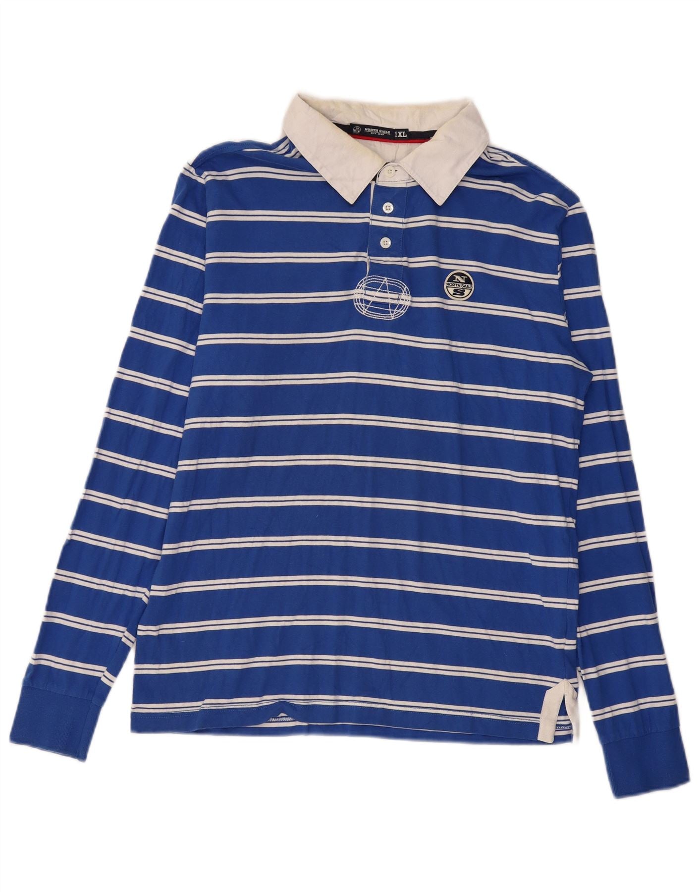 NORTH SAILS Polo de rugby de manga larga para hombre XL Algodón a rayas azules