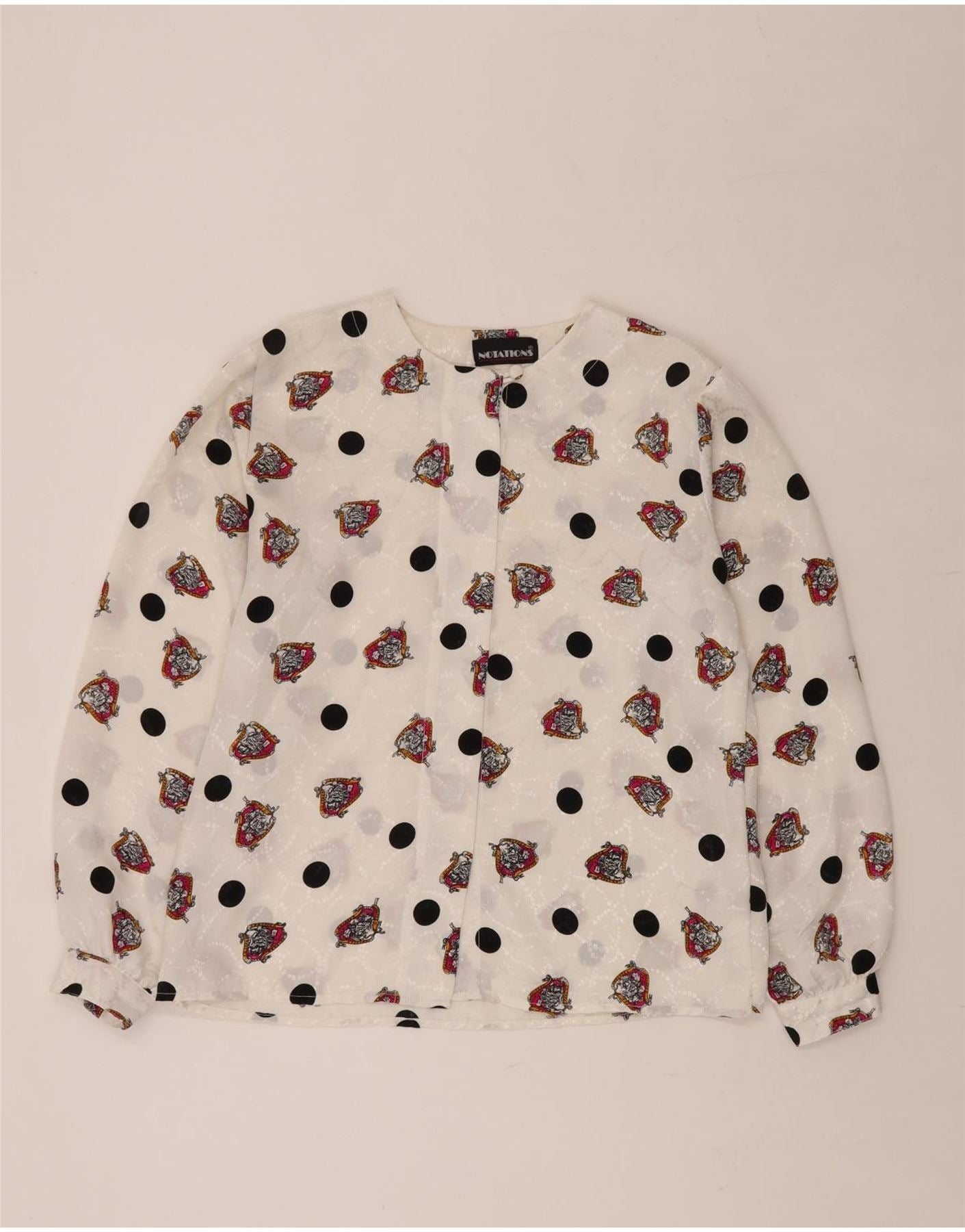 NOTACIONES Blusa camisera con estampado abstracto para mujer UK 46 Poliéster blanco grande
