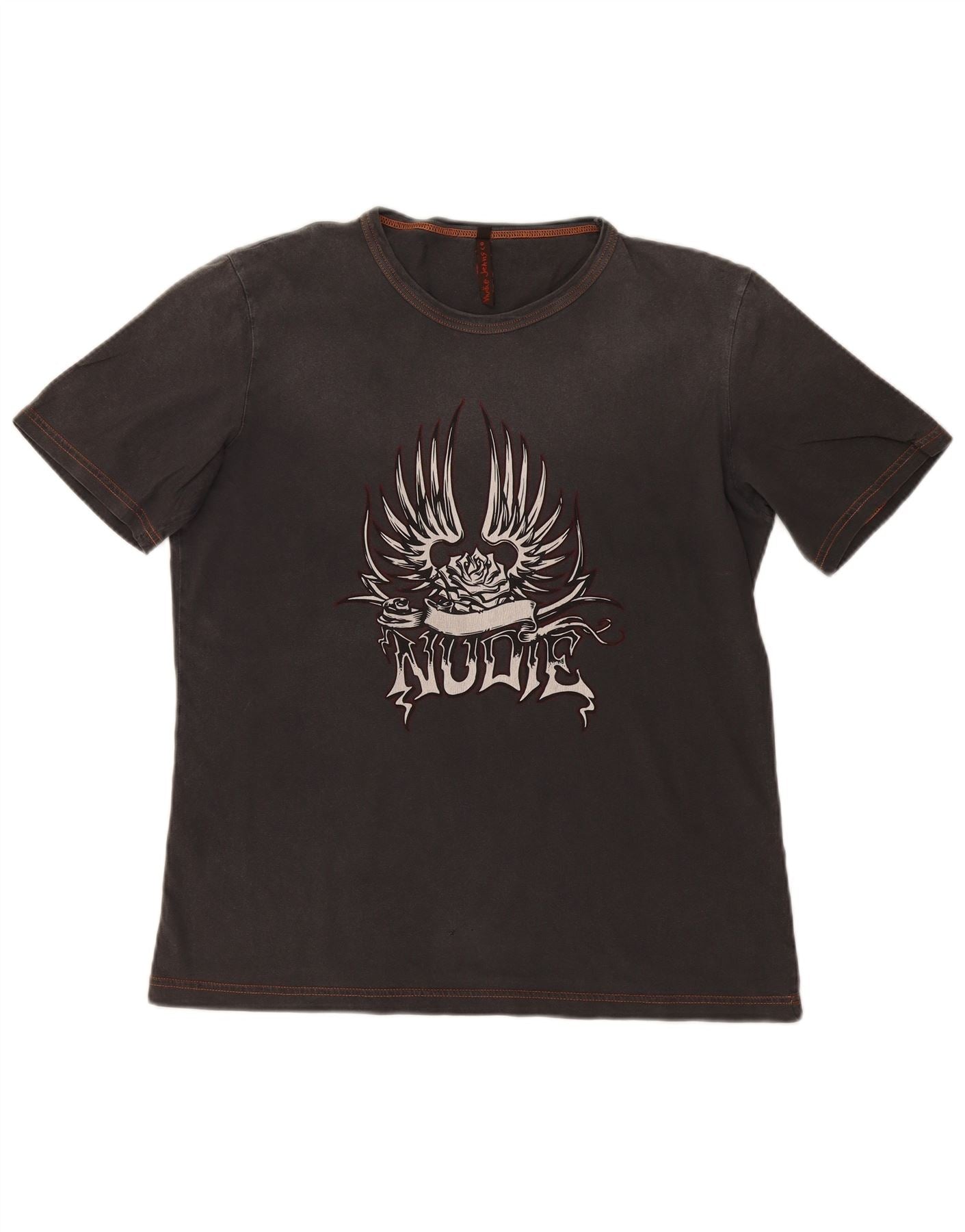 NUDIE JEANS Mens Graphic T-Shirt Top Large Grey Cotton