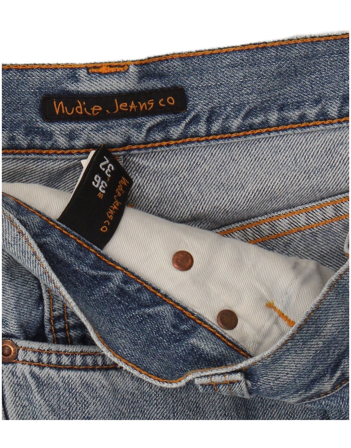 - AI Description: These Nudie Jeans mens straight jeans are crafted from classic blue denim. They feature a straight leg and a regular fit, ensuring timeless comfort. A button closure and traditional five-pocket design provide authentic detailing. The versatile blue denim offers an enduring aesthetic, perfect for everyday wear. This classic style balances structure with ease, making them a wardrobe essential.