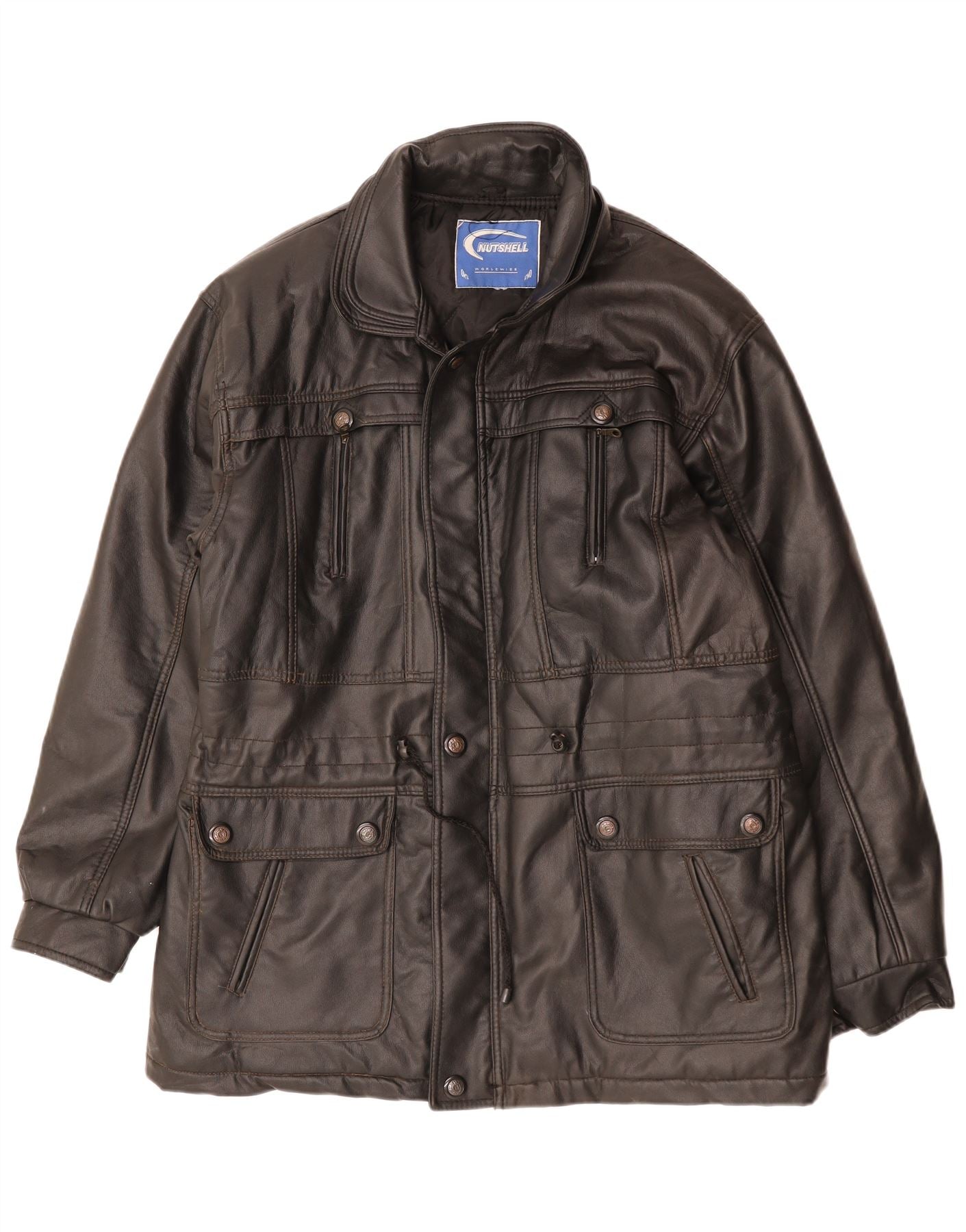 NUTSHELL Abrigo de cuero para hombre UK 40 Large Black