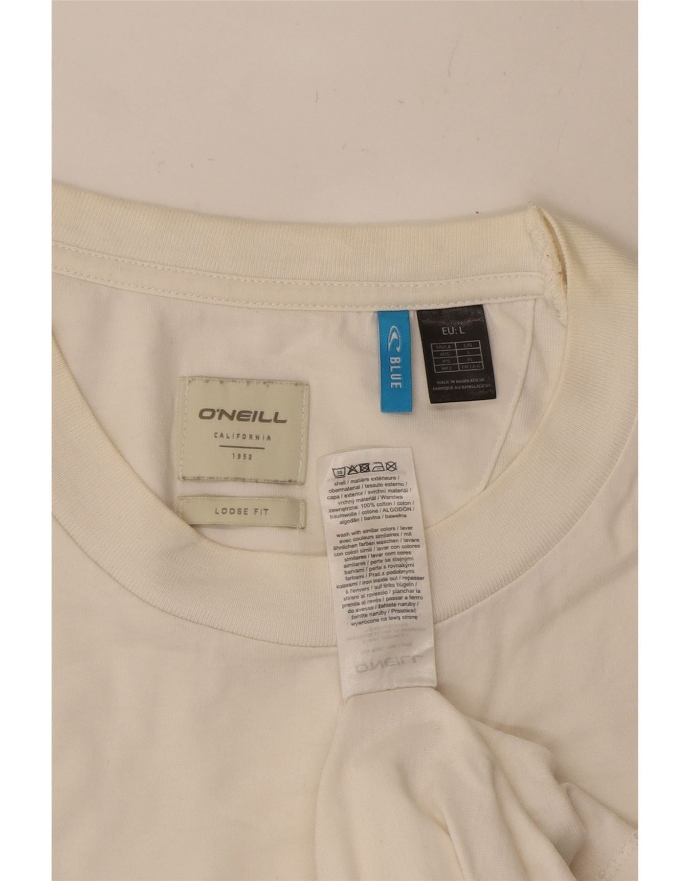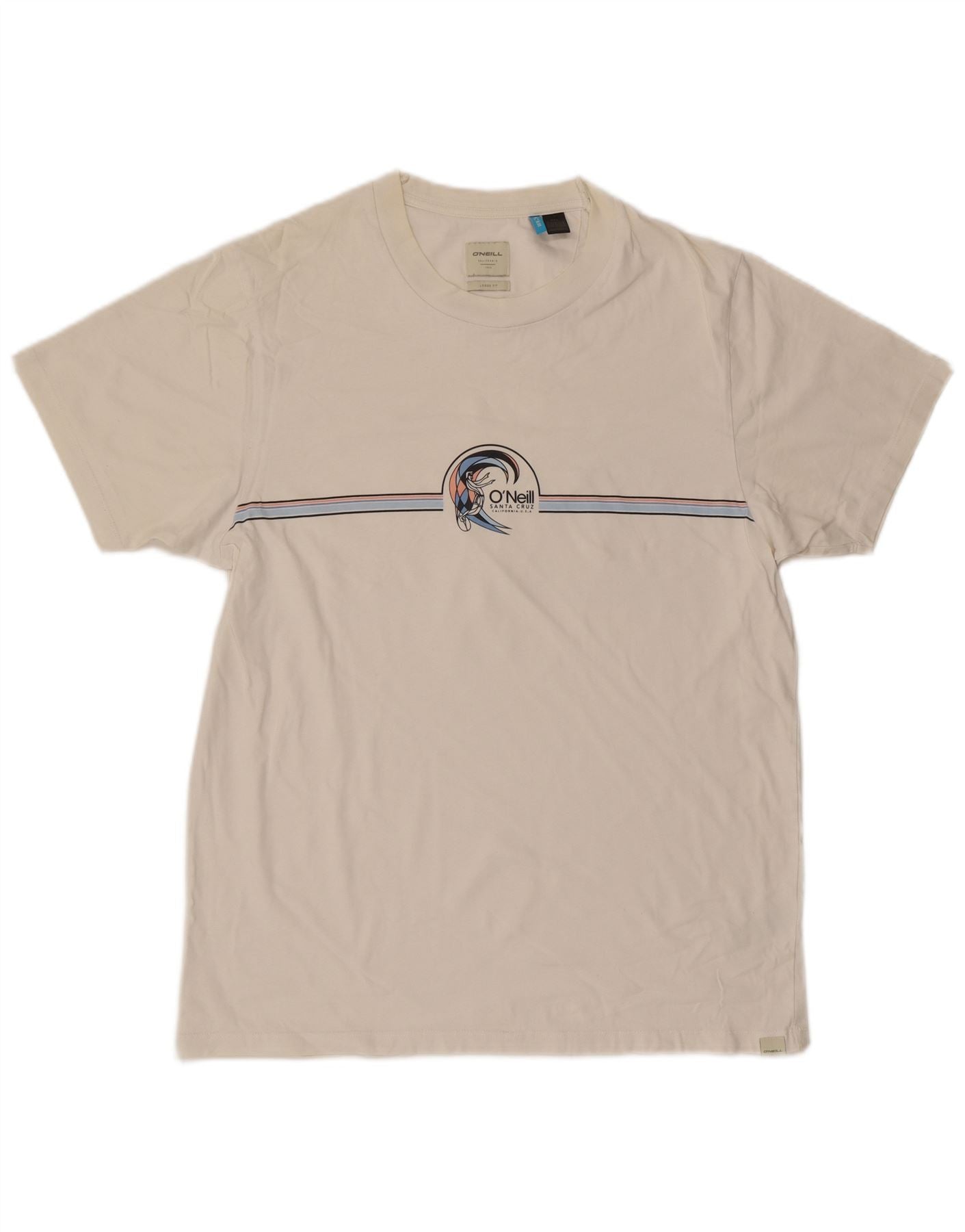 O'NEILL Mens Loose Fit Graphic T-Shirt Top Large White Striped Cotton