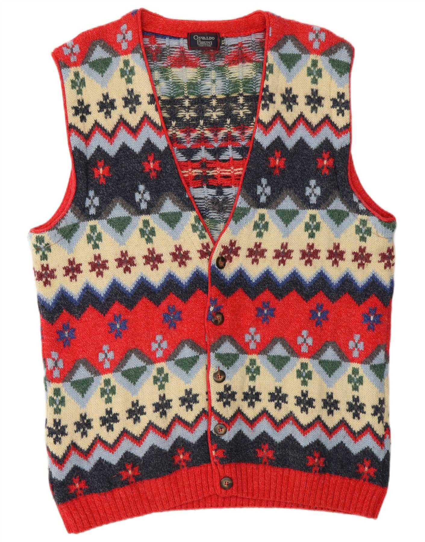 OSVALDO BRUNI Suéter tipo cárdigan sin mangas para hombre XL Multicolor Fair Isle