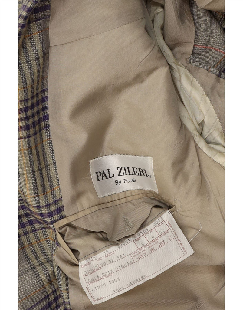 PAL ZILERI Mens 2 Button Blazer Jacket IT 52 XL Grey Check Linen