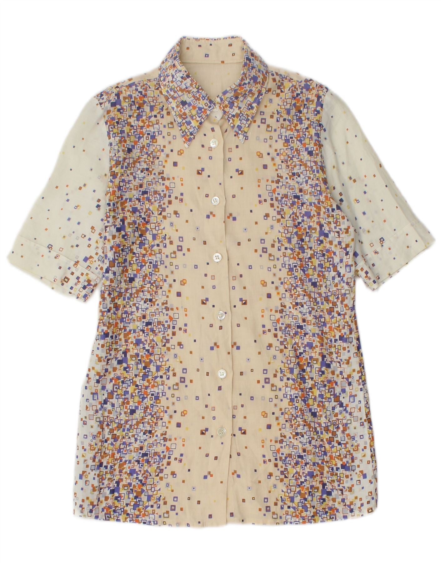 FRED PERRY Blusa camisera para mujer UK 40 Grande Seda Beige