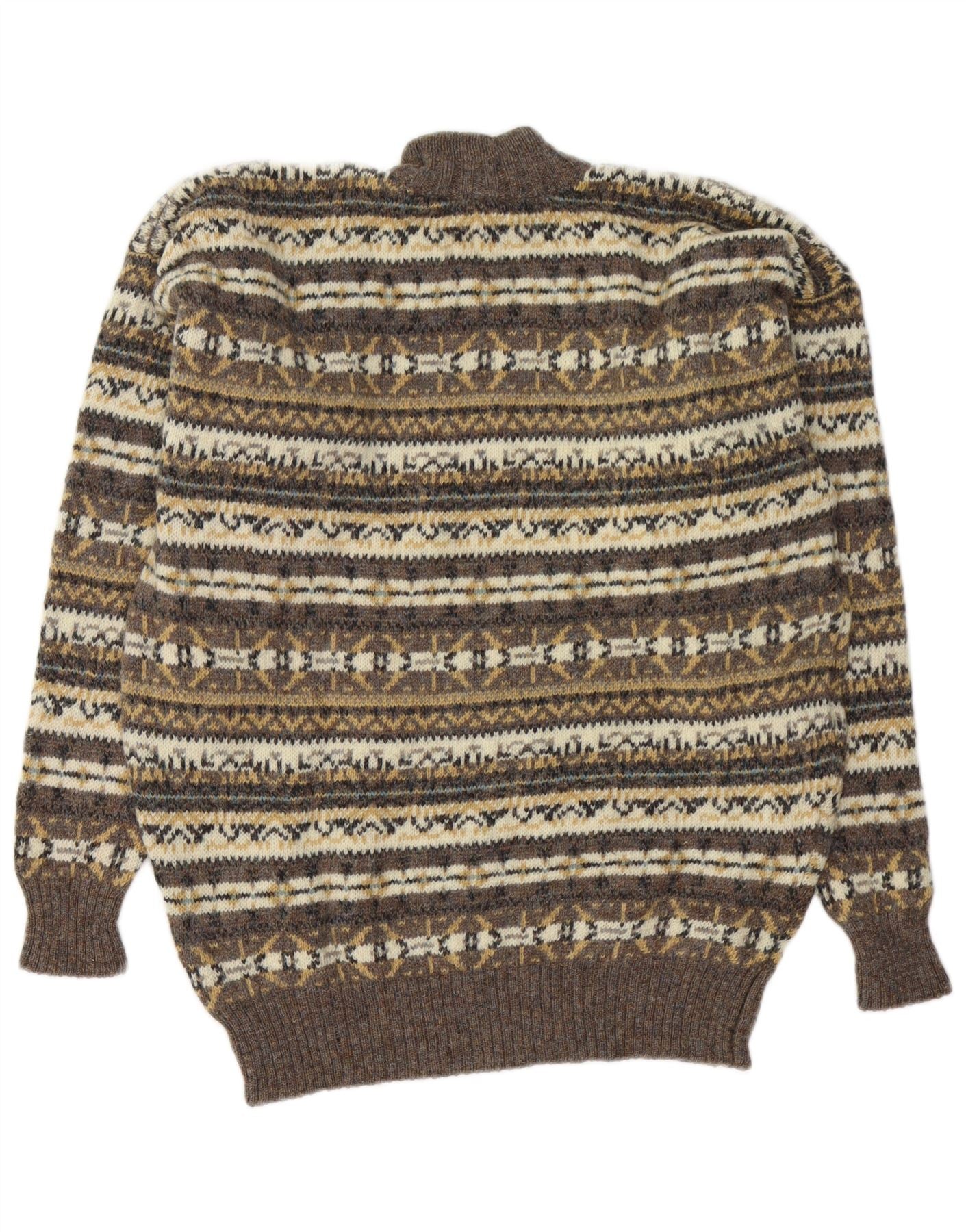 PAOLO DI QUINTO Suéter tipo jersey con cuello alto para hombre, talla grande, color marrón, Fair Isle
