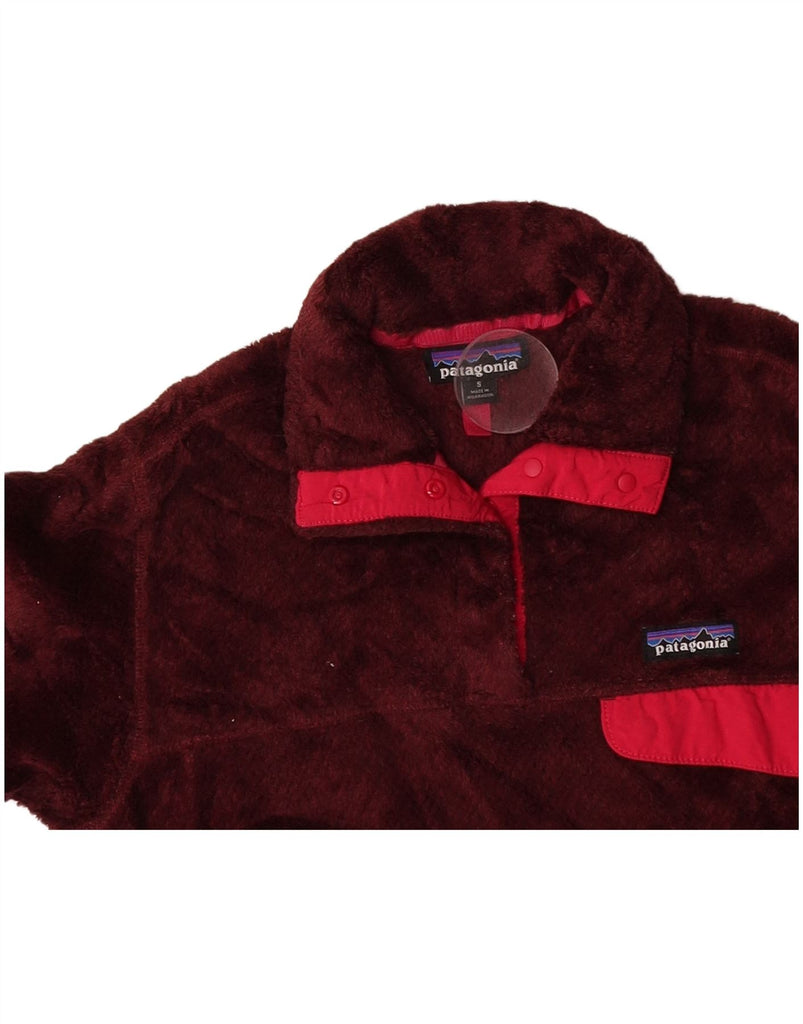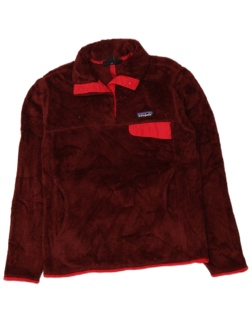 PATAGONIA Womens Button Neck Fleece Jumper UK 10 Small Burgundy Polyester