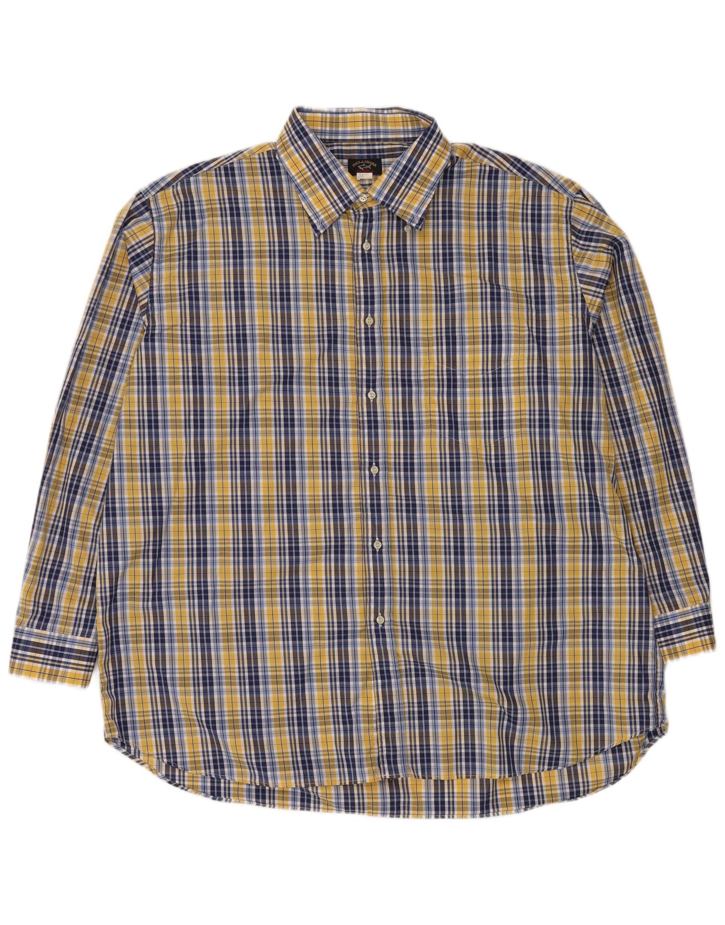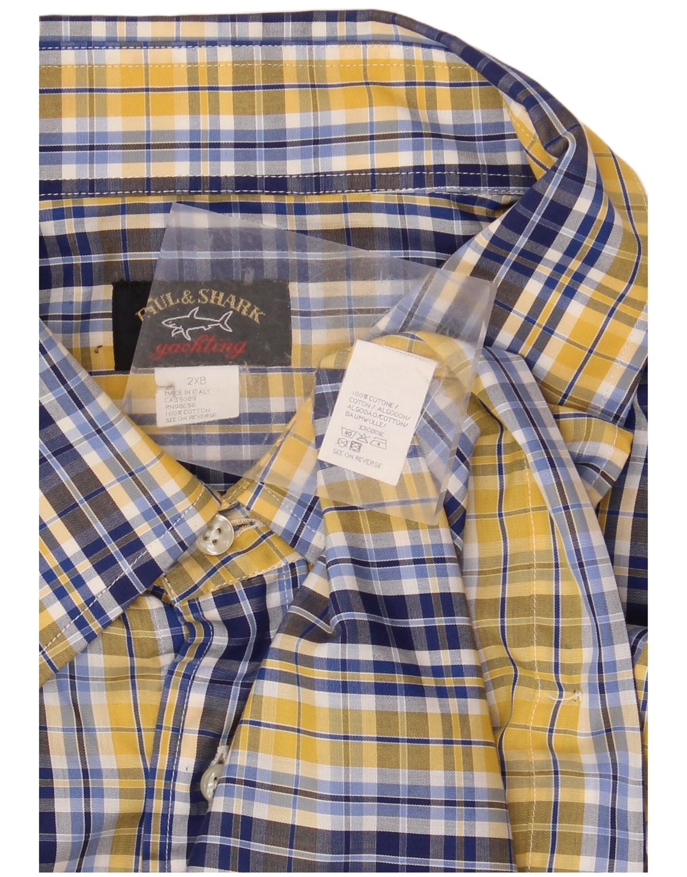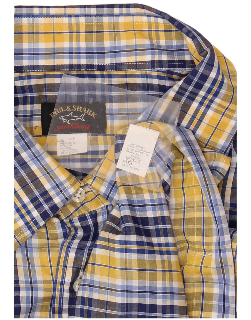 PAUL & SHARK Camisa grande y alta para hombre 2XL Algodón a cuadros amarillo