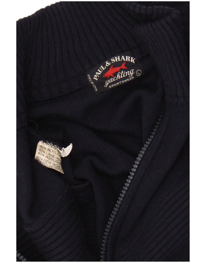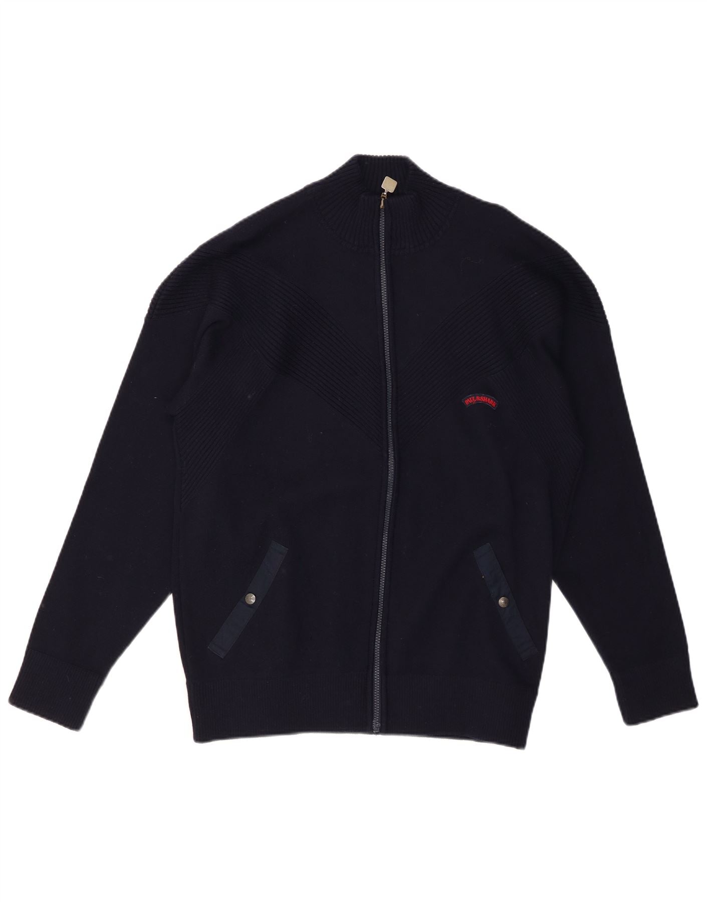PAUL & SHARK Suéter tipo cárdigan para hombre grande de lana azul marino