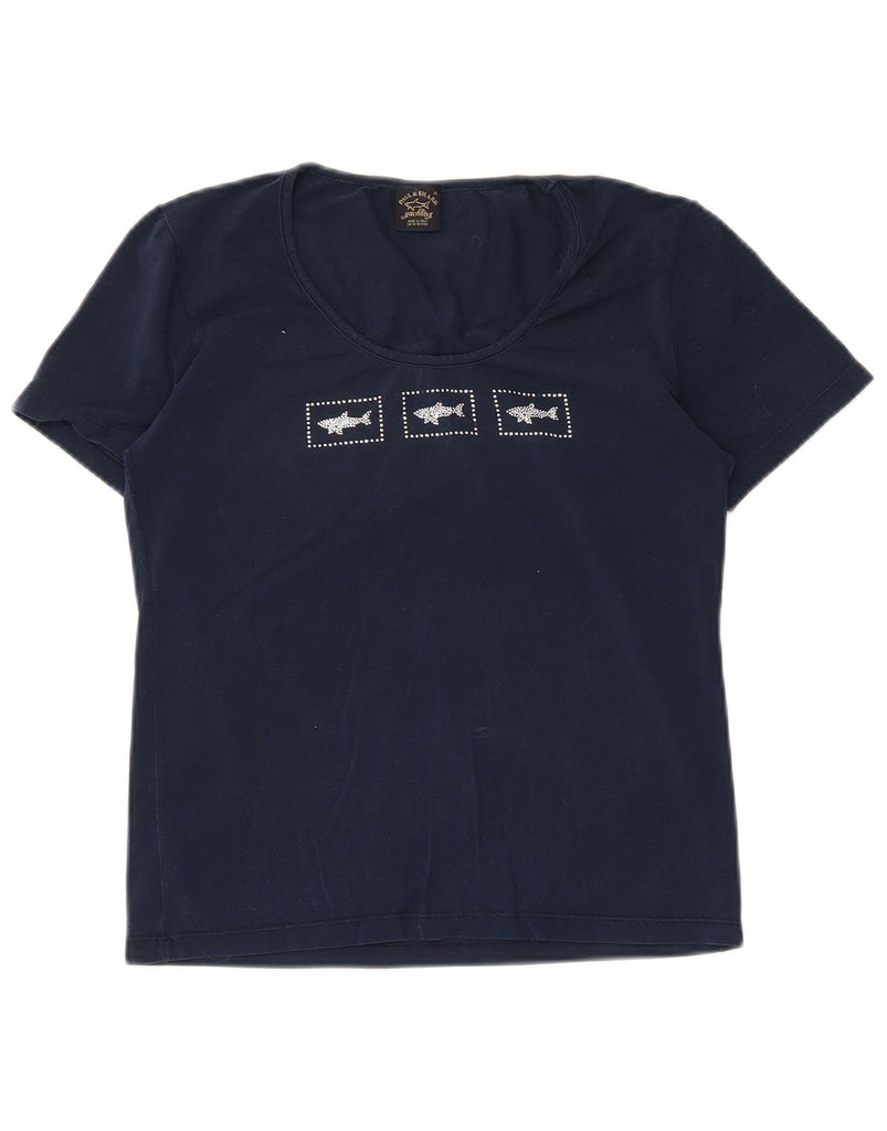 PAUL & SHARK Womens Yachting Graphic T-Shirt Top UK 12 Medium Navy Blue