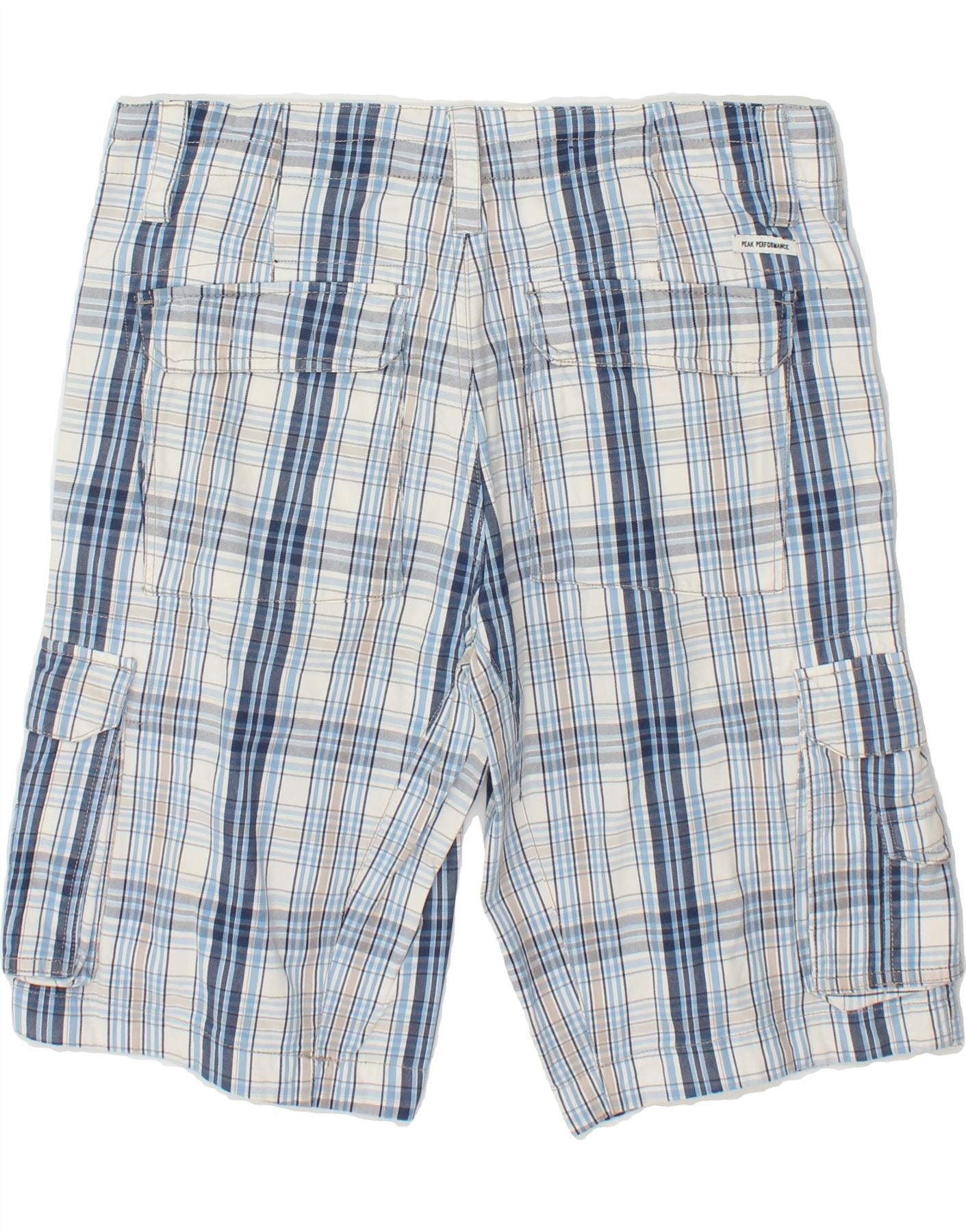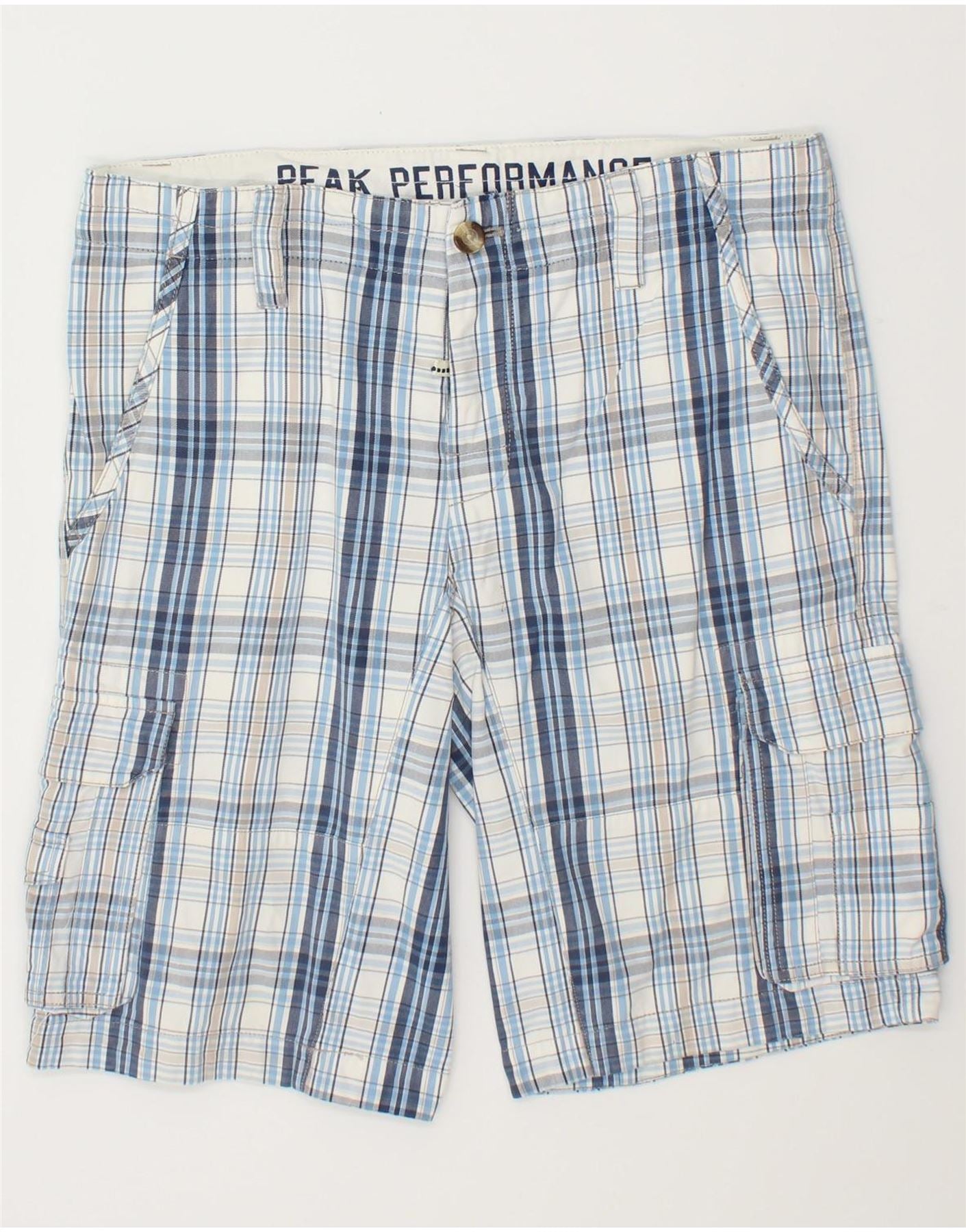 PEAK PERFORMANCE Mens Cargo Shorts W34 Large Blue Check Cotton