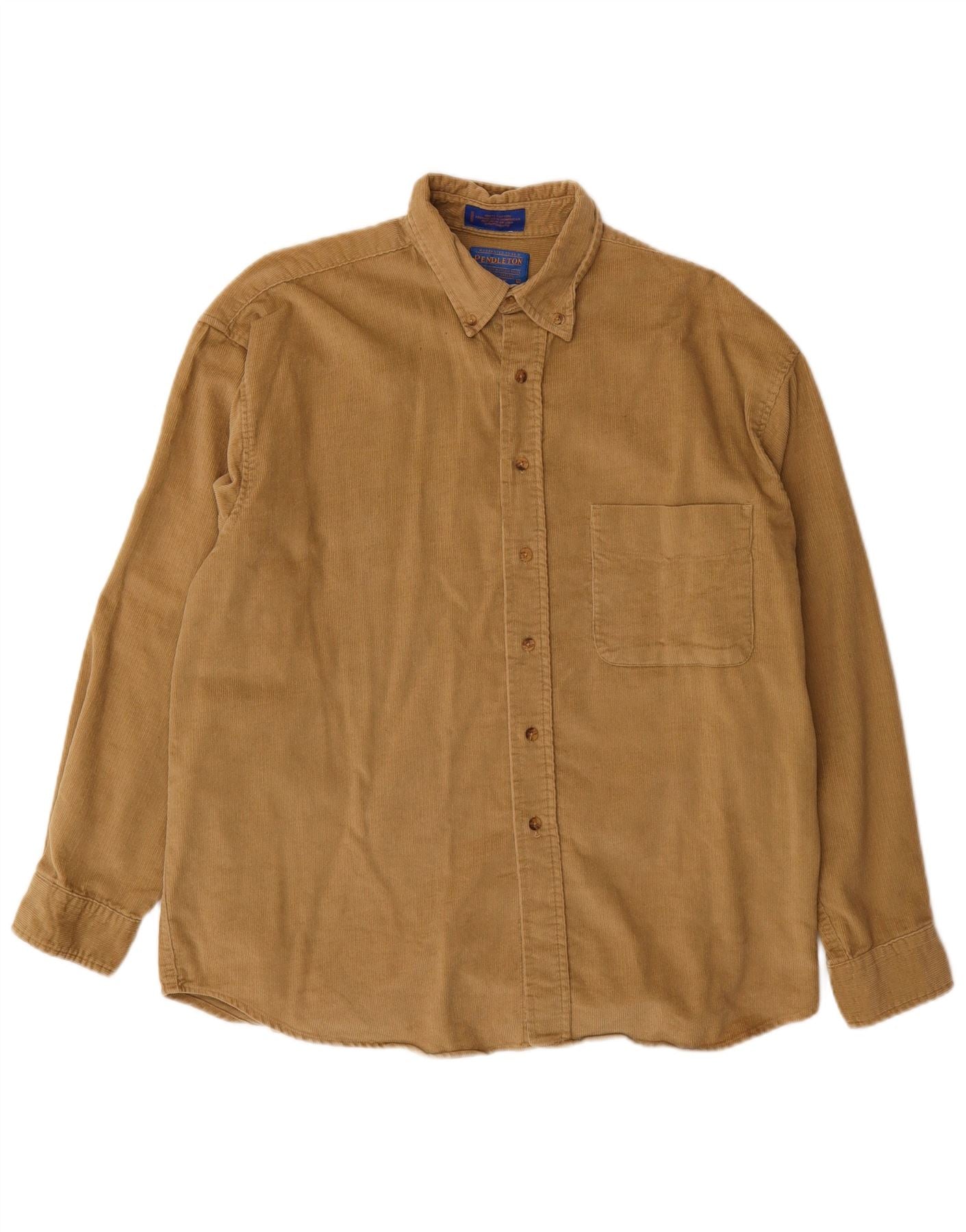 - AI Description: This Pendleton mens corduroy shirt is crafted from 100 percent cotton, offering a soft, textured feel. The rich brown hue adds classic warmth. It features a collared neckline and a full button-up front for a traditional look. Long sleeves and a regular fit ensure comfortable wear. Practical pockets complete the design, blending style with utility.