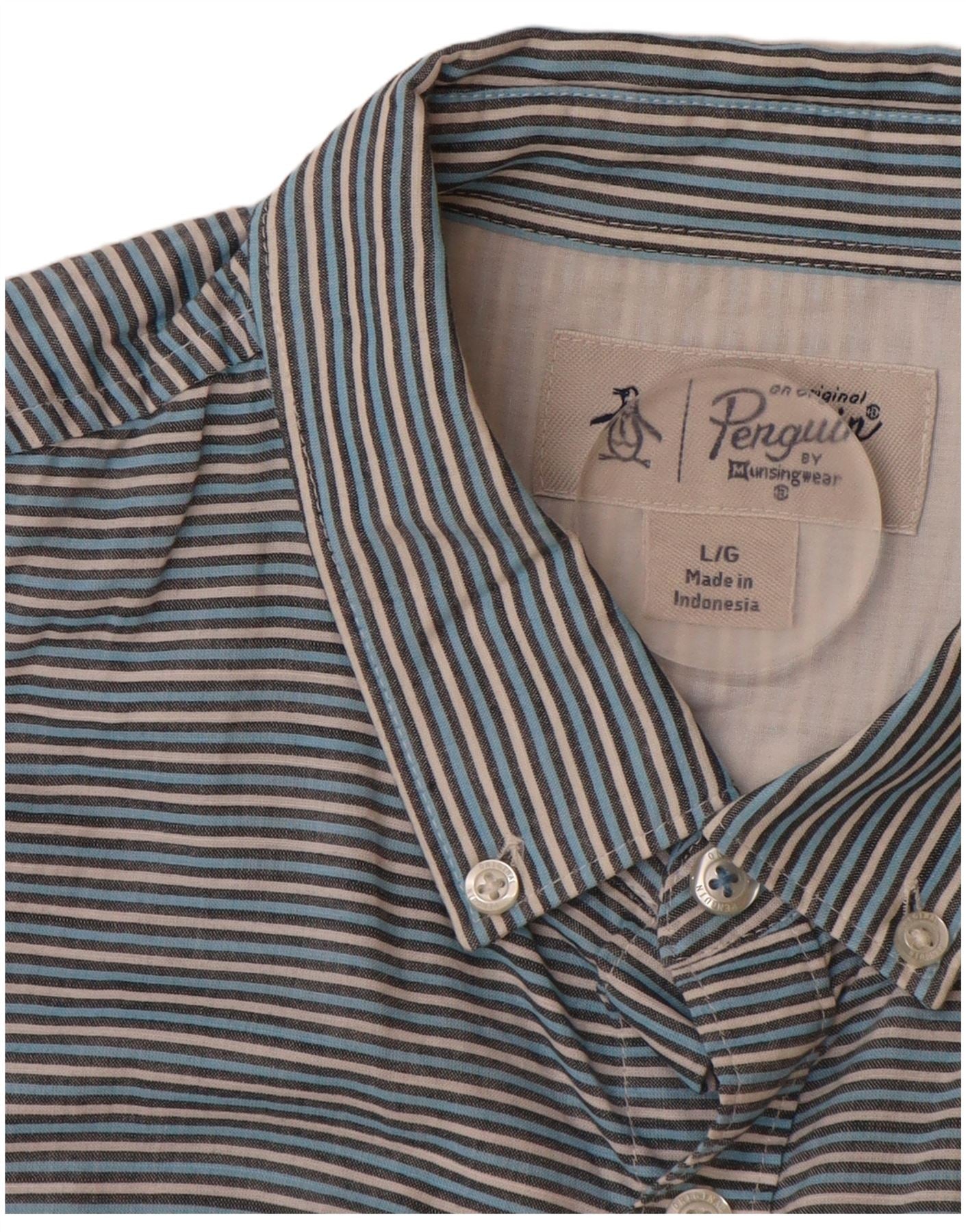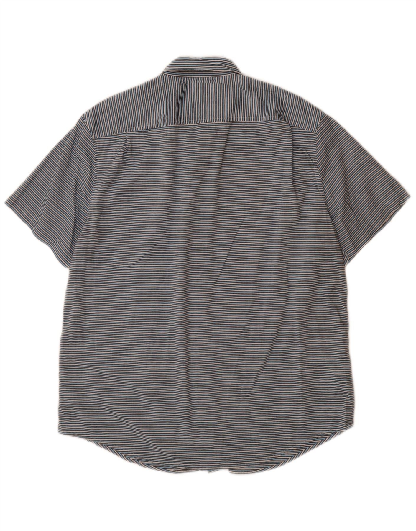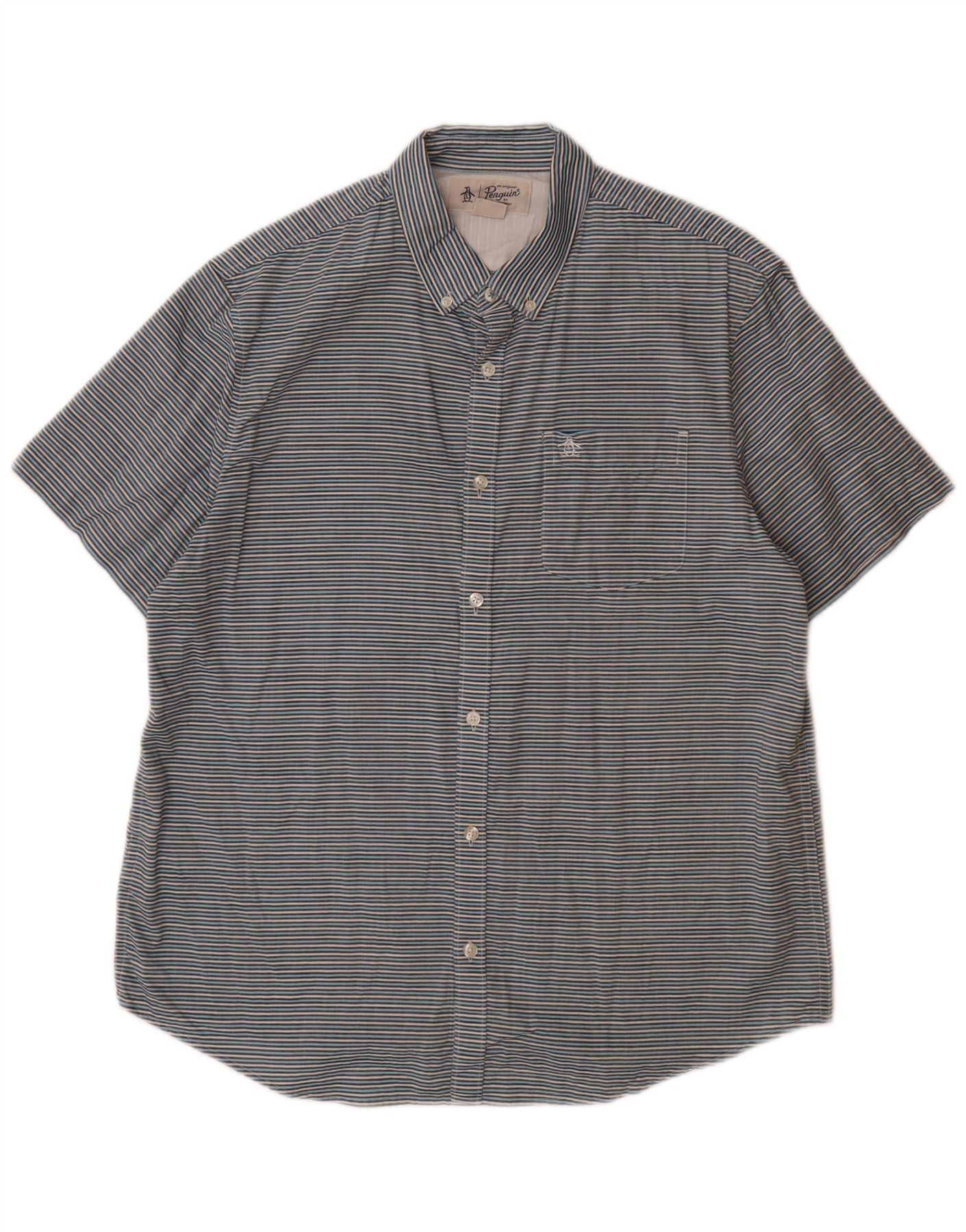 PENGUIN Camisa de manga corta para hombre de algodón a rayas azul grande