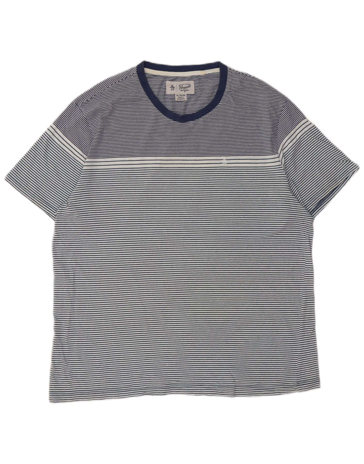 PENGUIN Camiseta alta para hombre Top XL Algodón a rayas azul marino