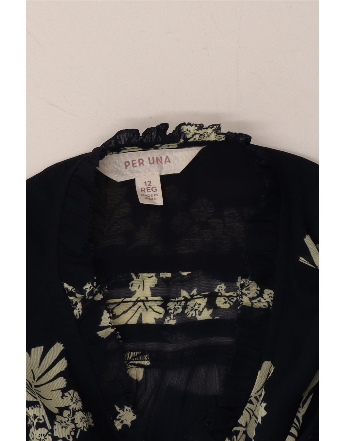 PER UNA Womens Long Sleeve Maxi Dress UK 12 Medium Navy Blue Floral