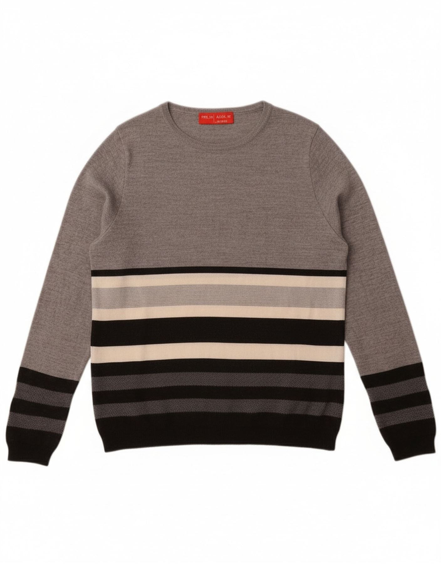 Perte by Krizia Suéter tipo jersey para mujer con cuello barco UK 44 Gris medio a rayas