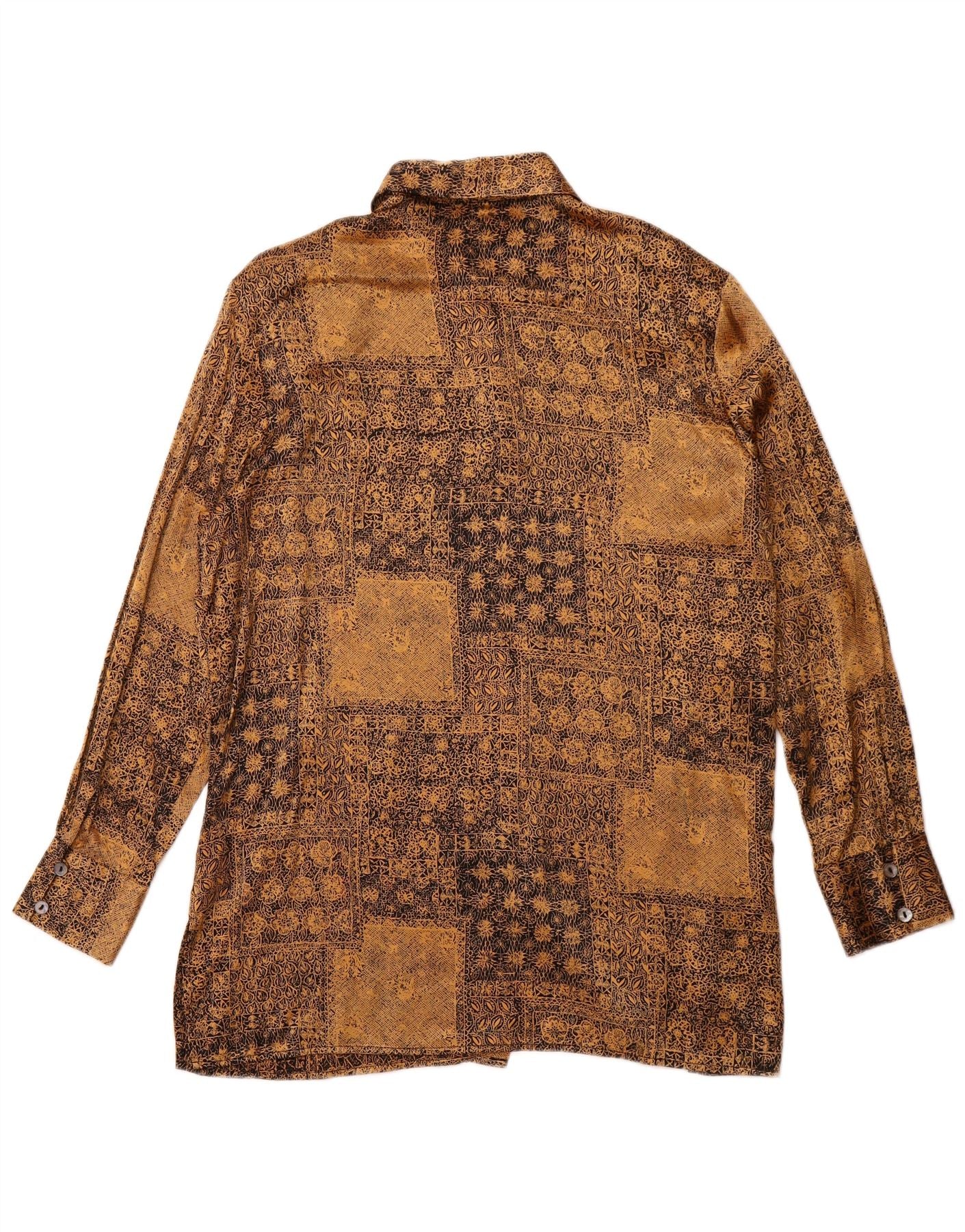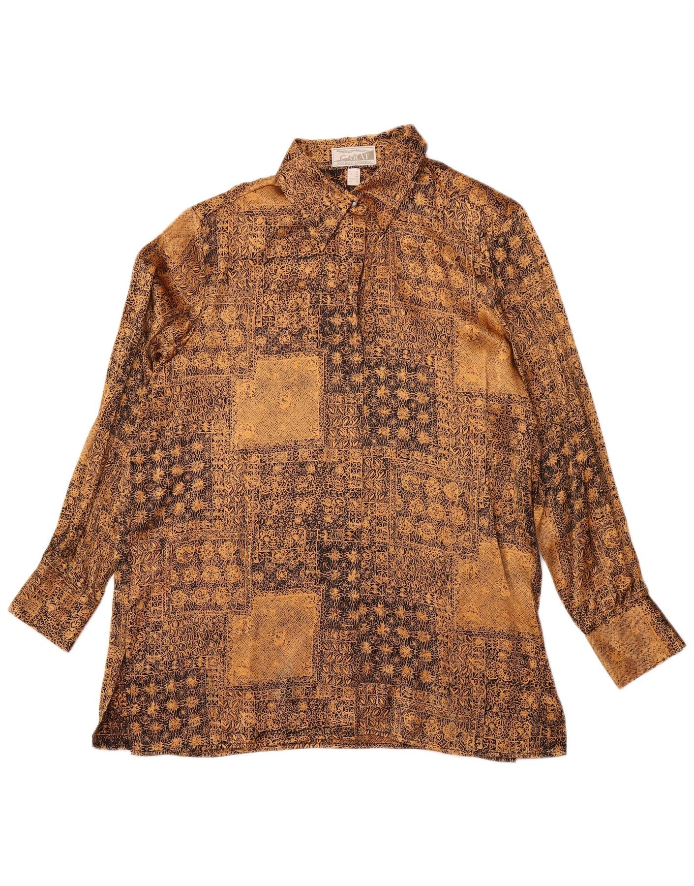 PETER HAHN Womens Longline Shirt UK 16 Large Gold Floral Silk