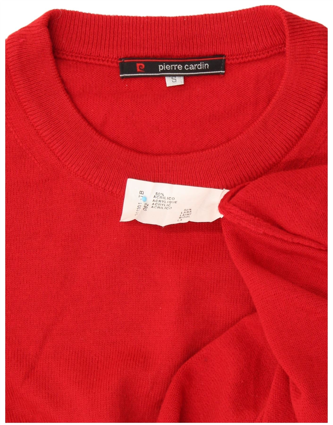 PIERRE CARDIN Mens Crew Neck Jumper Sweater Small Red Acrylic