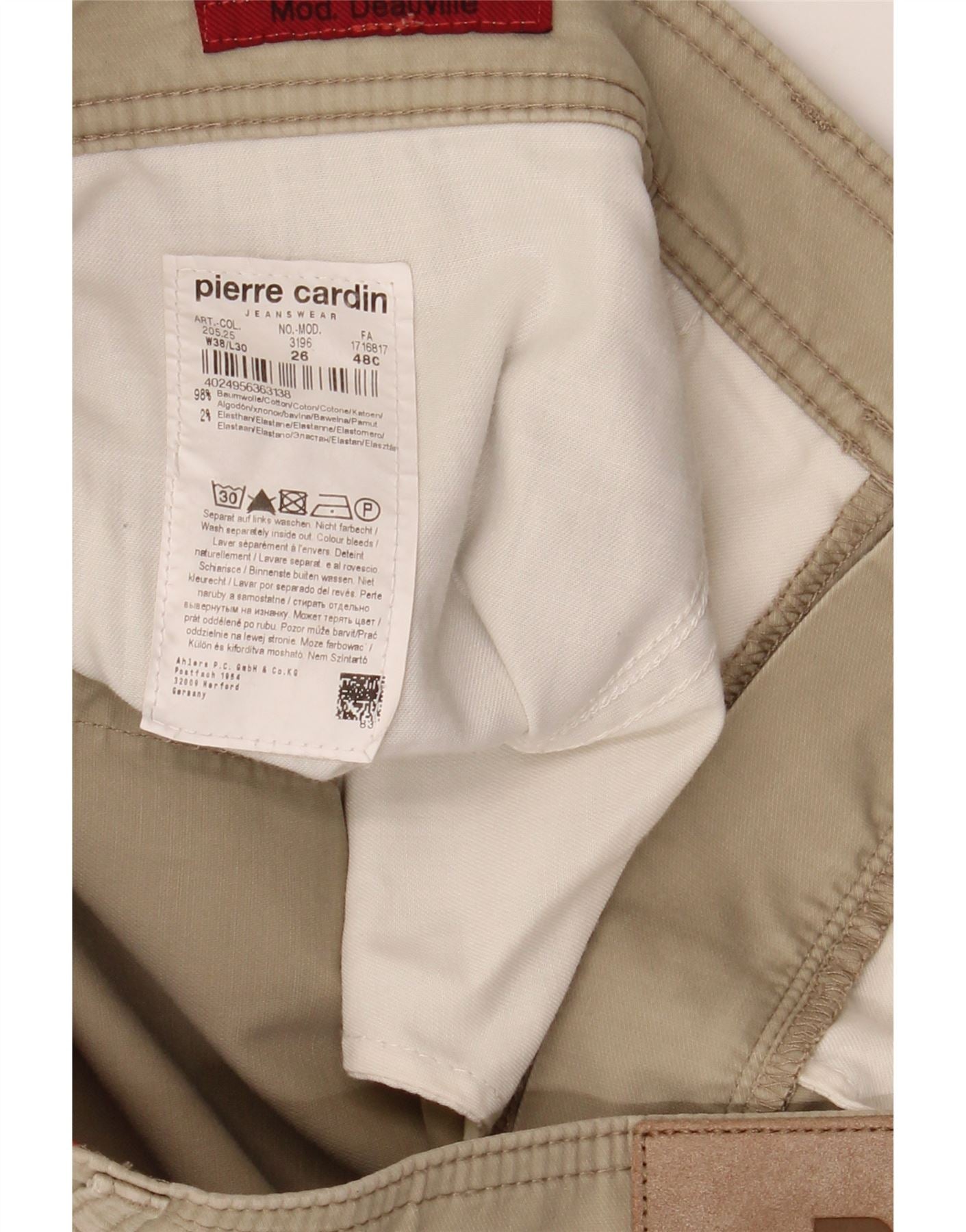 PIERRE CARDIN Mens Straight Casual Trousers W38 L30 Beige Cotton