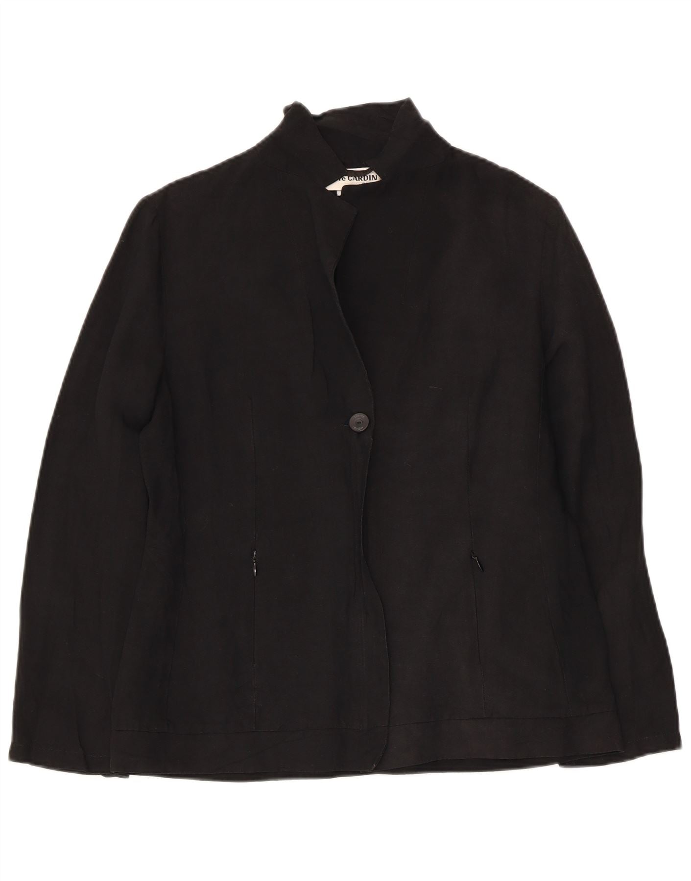 PIERRE CARDIN Chaqueta tipo blazer de 1 botón para mujer UK 42 Mediana Lino negro