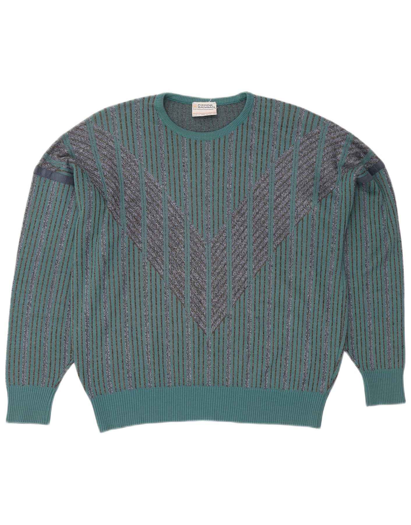 PIERRE SANGAN Suéter De Cuello Redondo Para Hombre Acrílico A Rayas Azul Grande